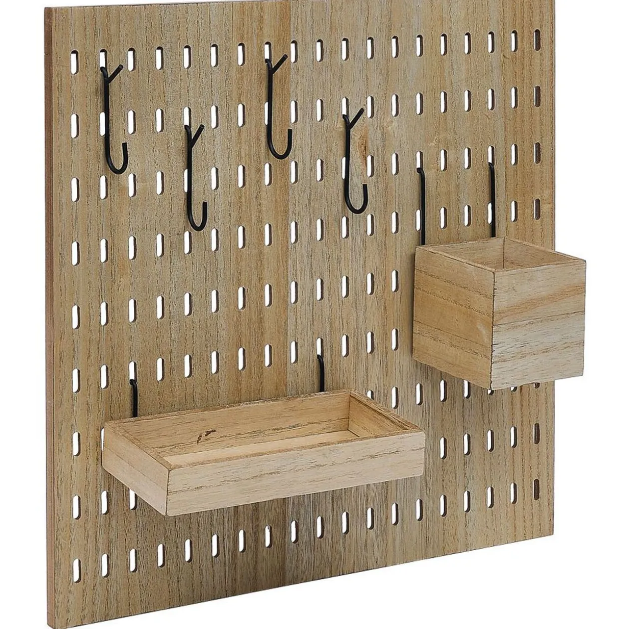 Panneau perforé avec accessoires de rangement. Idéal pour organiser un bureau ou pour rassembler des accessoires dans l’entrée.