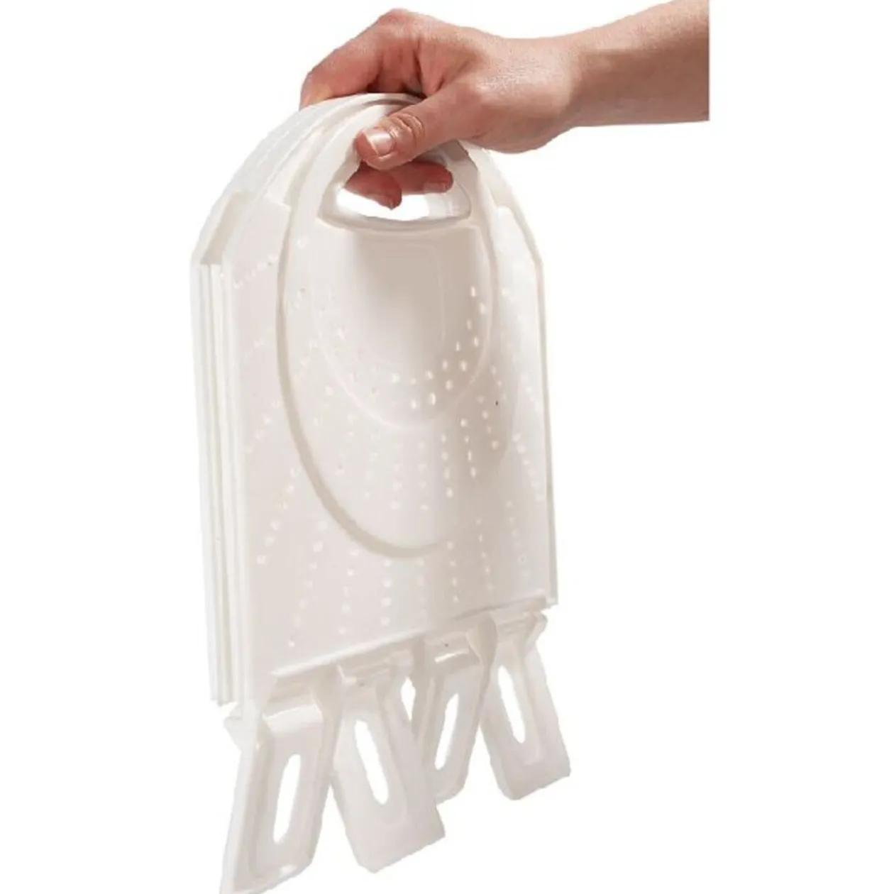 Passoire pliante extra plate en plastique, maniable grâce à ses anses, avec bec verseur très pratique. Elle se nettoie très facilement. Dim. 31,5x28x1,9 cm.