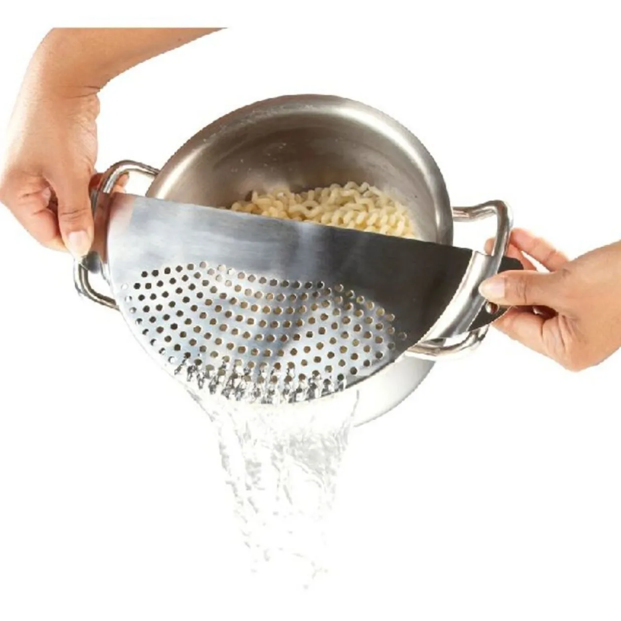 Passoire pour casserole en inox, de 33 cm sur 13 cm, s’adapte à toutes les casseroles et tous les faitouts d’un diamètre maximal de 24 cm. En acier inoxydable, elle passe au lave vaiselle.