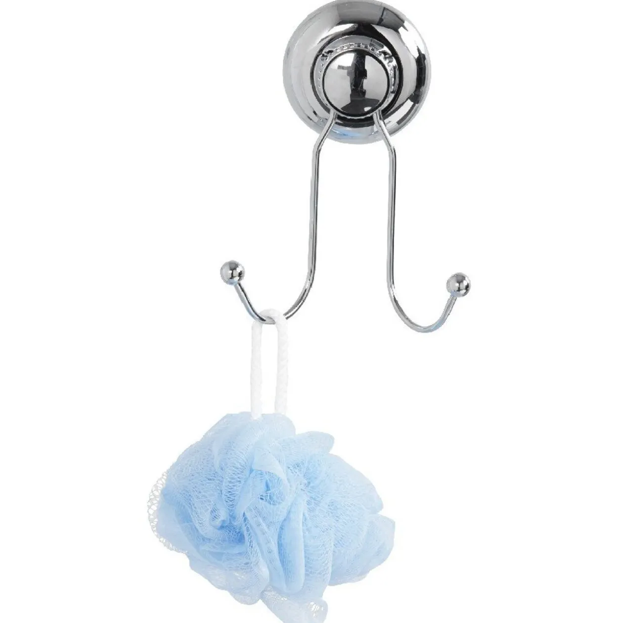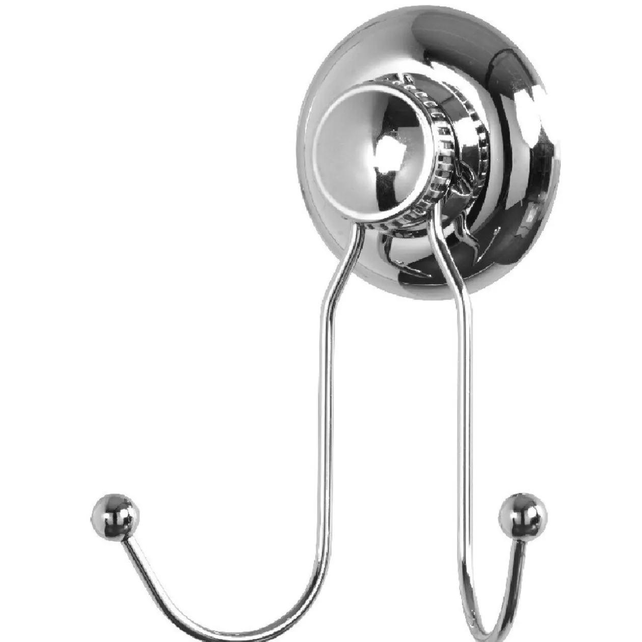 Patère 2 crochets avec 1 ventouse ø 7 cm, dim. 12xh.13,5 cm, métal.