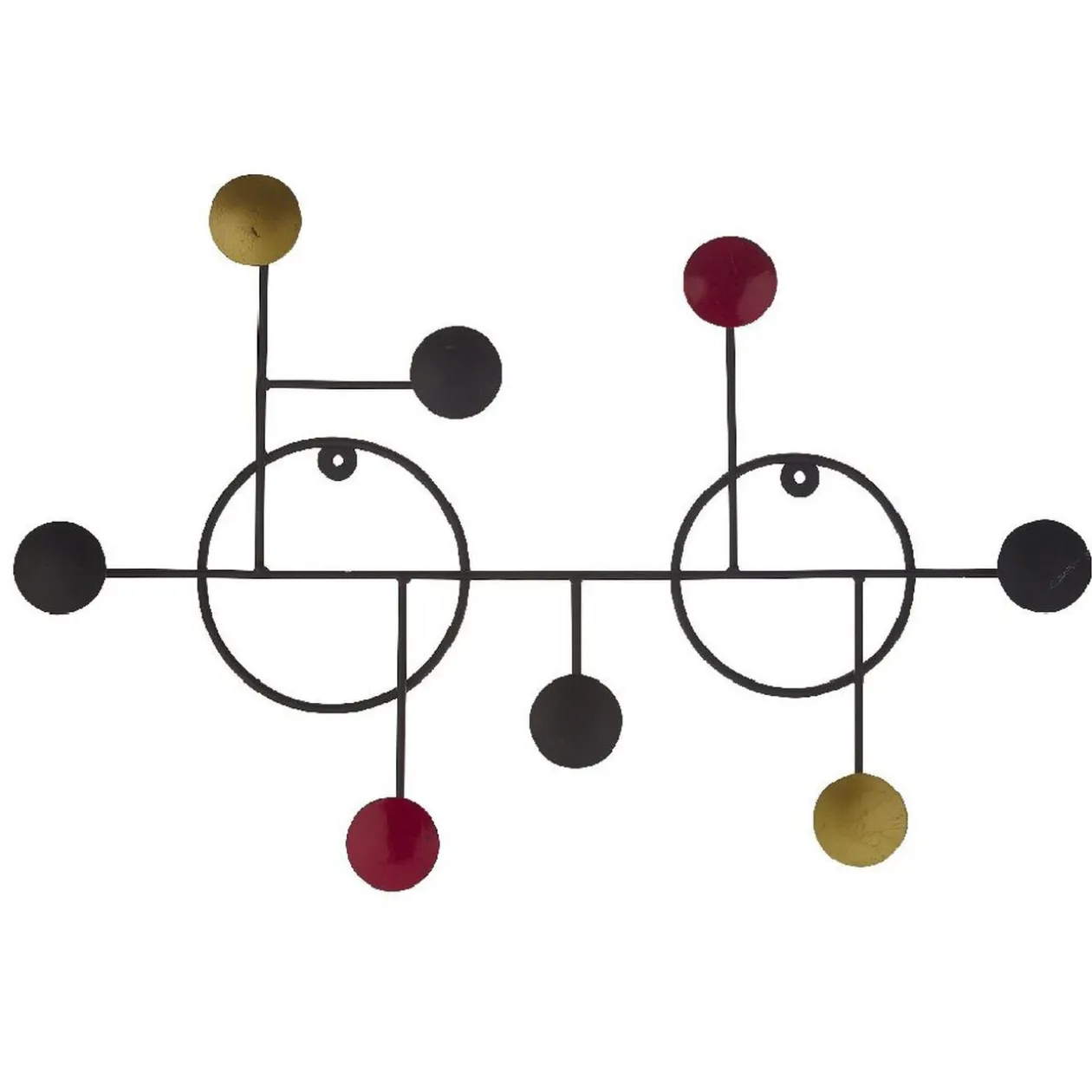 Apportez une touche moderne à votre intérieur avec cette patère tendance en métal noir avec 8 crochets dont 2 dorés, 2 rouges et 4 noirs.