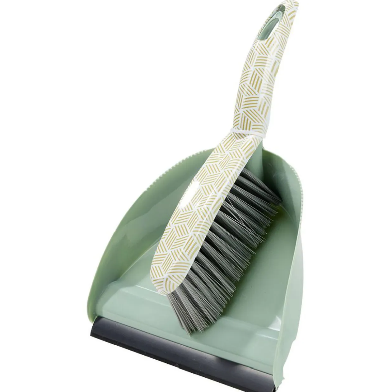 Pelle et balayette de couleur verte, parfaites pour ramasser les poussières et saletés.