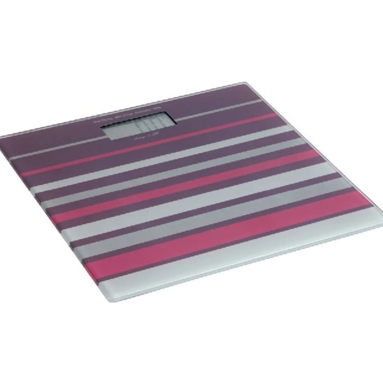 Pèse-personne digital, précision 100 gr. Fonctionne avec 1 pile CR2032 incluse. Poids max 150 kg. Diff. coloris, disponibilité selon arrivage.