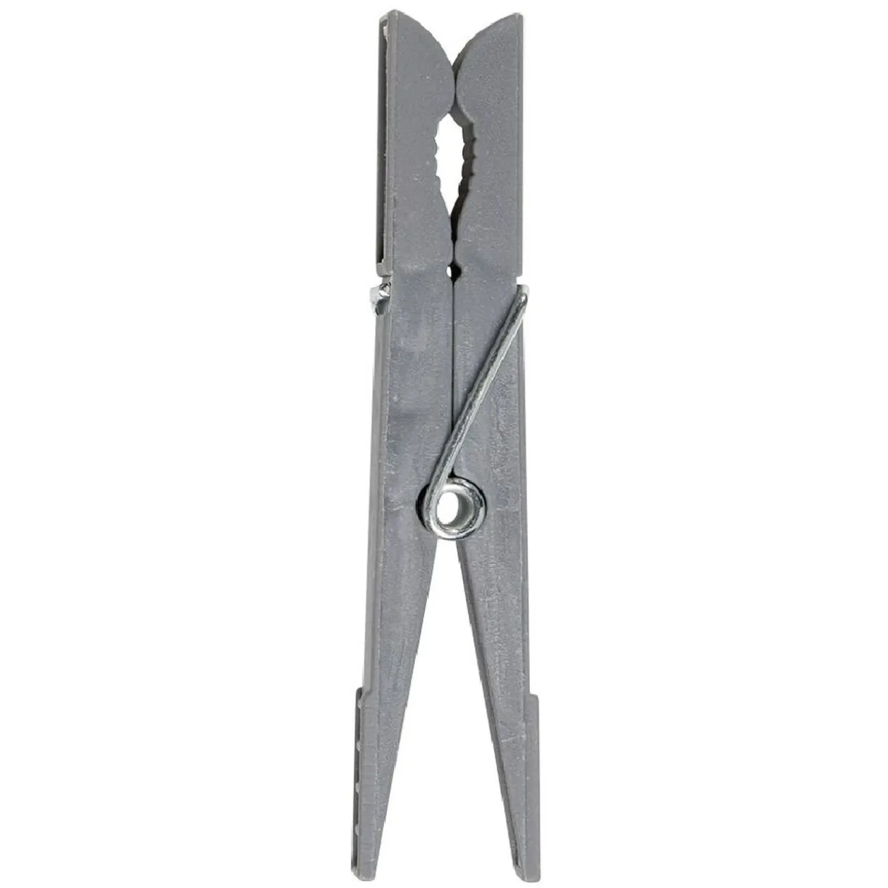 Bocal en plastique à suspendre avec 100 pinces à linge de couleur blanche, grise et verte.