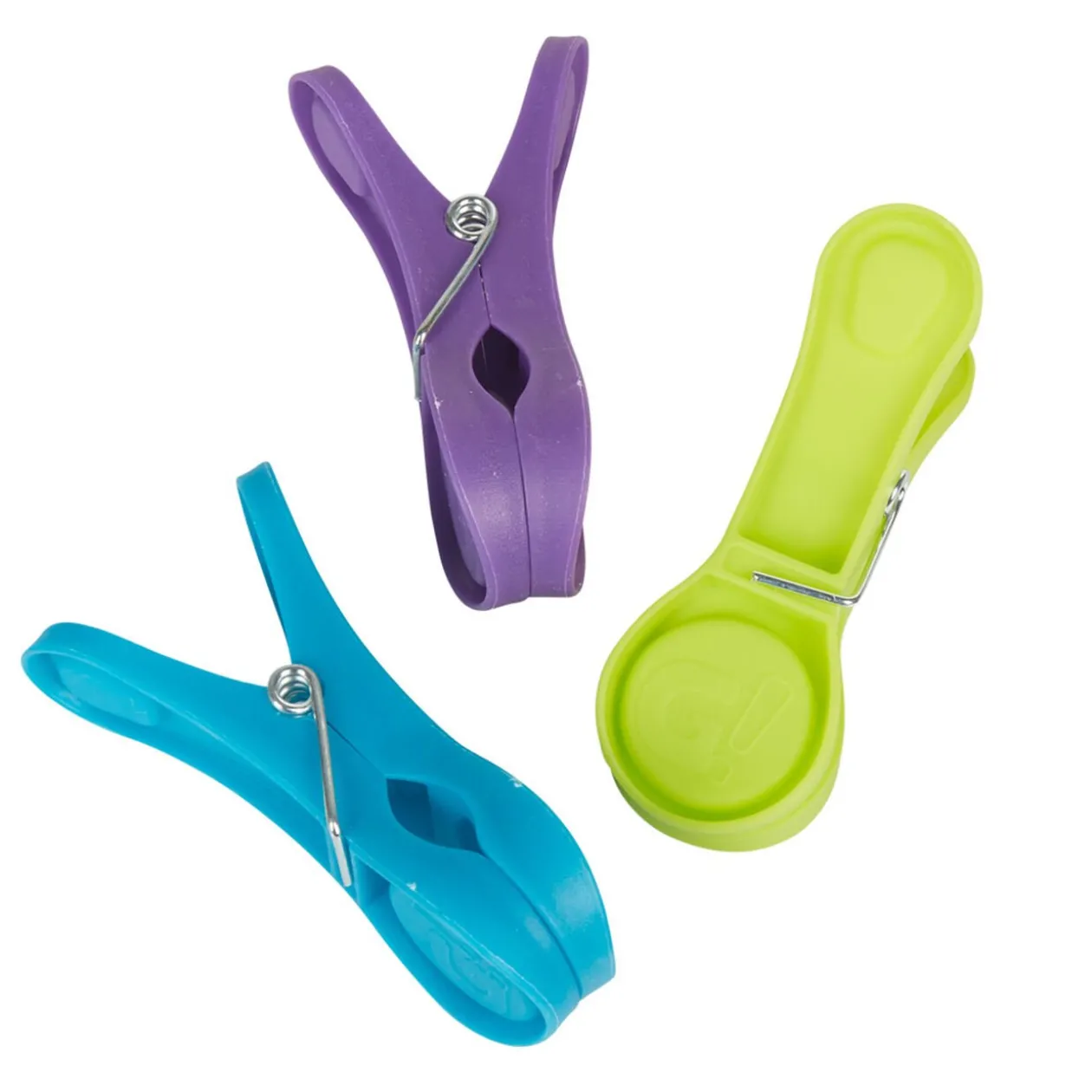 Assortiment de 24 pinces à linge en plastique multicolore.Dimensions: 3,2×8,9×4,2 cm