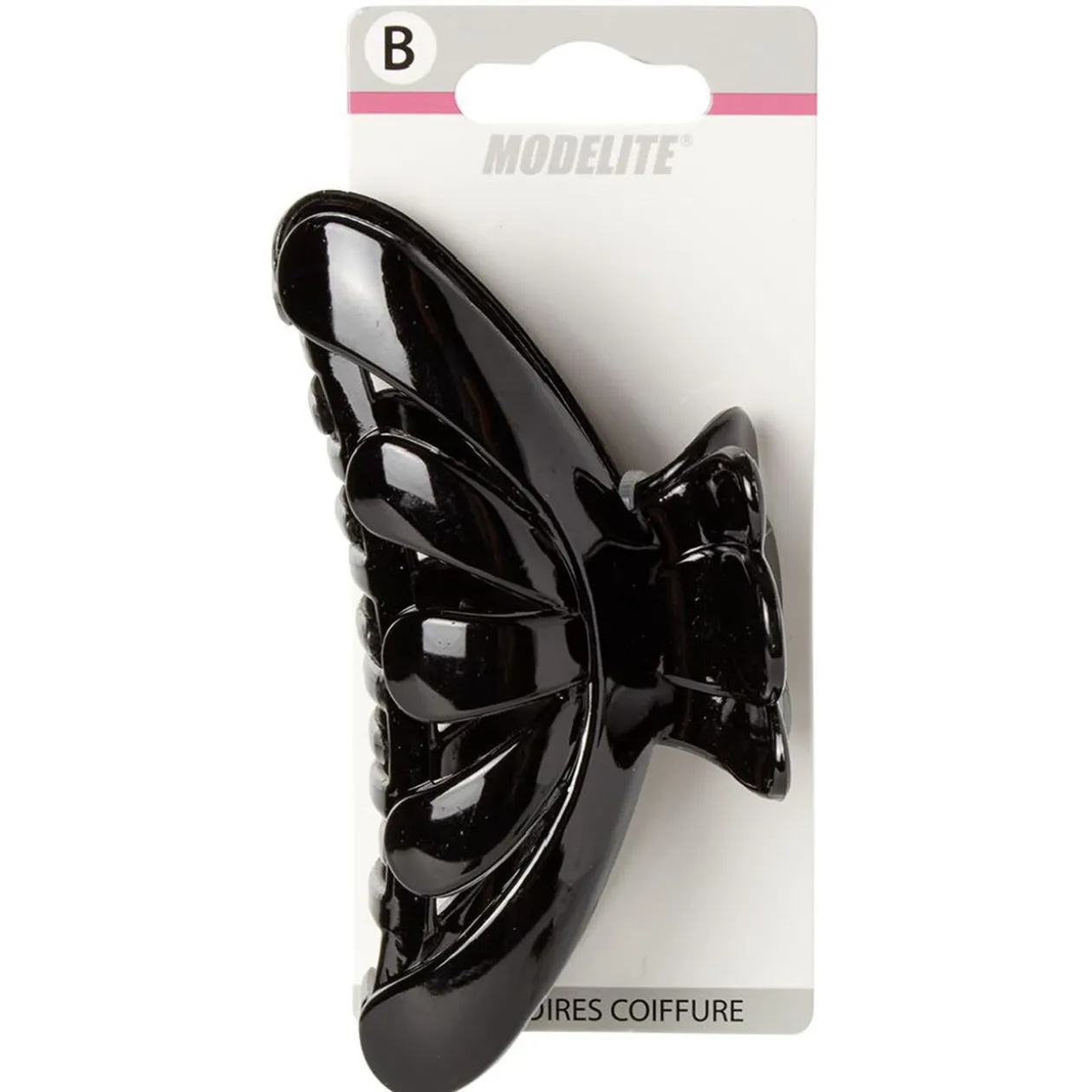 Pince crocodile en plastique uni noir brillant. Longueur : 12 cm