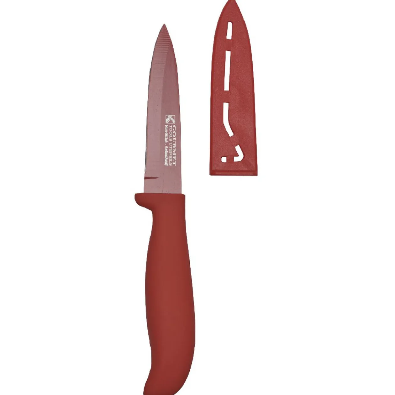 Planche à découper blanche et rouge et couteau rouge assorti avec revêtement anti-adhésif.