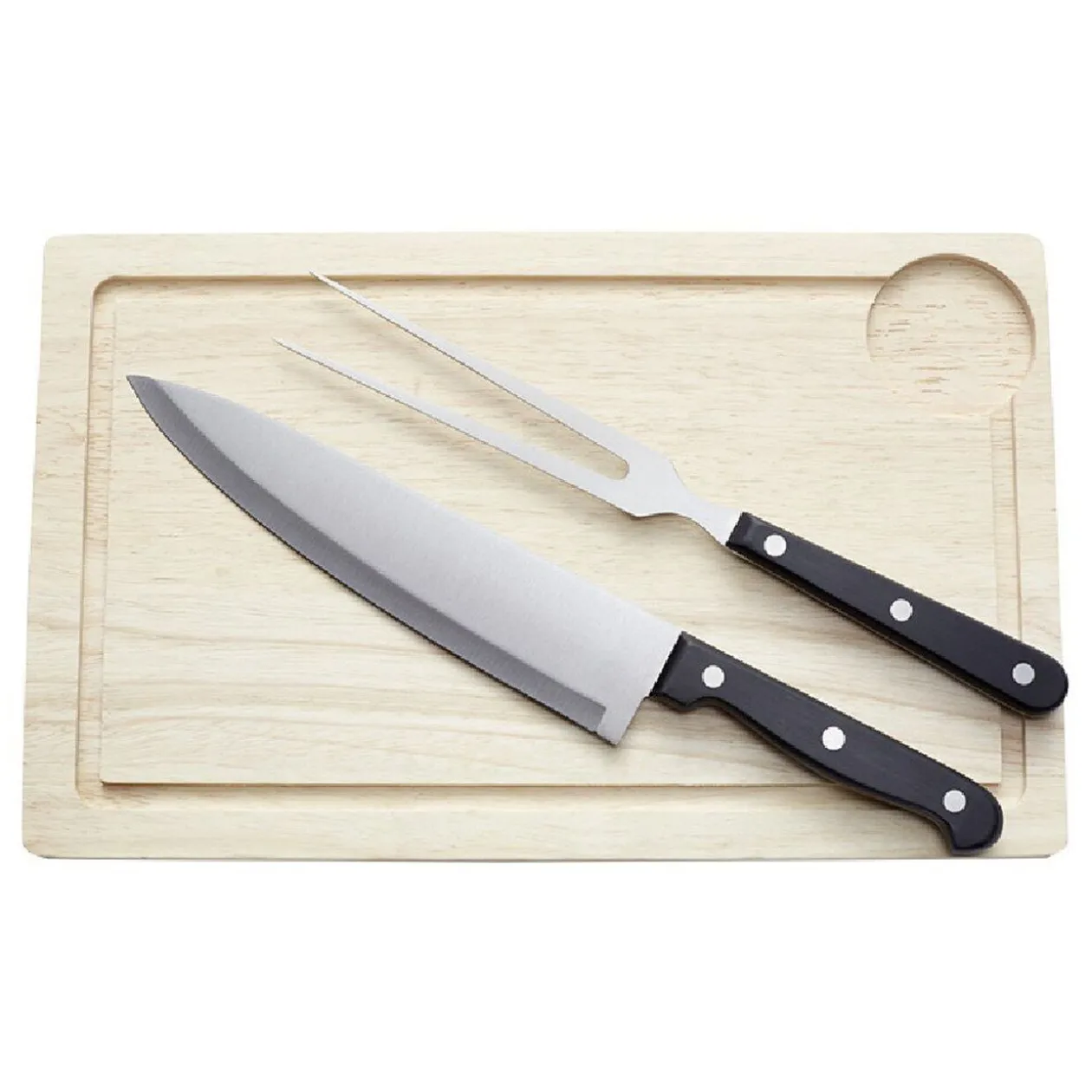 Elle est fournie avec un couteau de chef et une fourchette à découper. Grâce à ces derniers, vous pourrez saisir et couper aisément votre pièce de viande encore chaude.