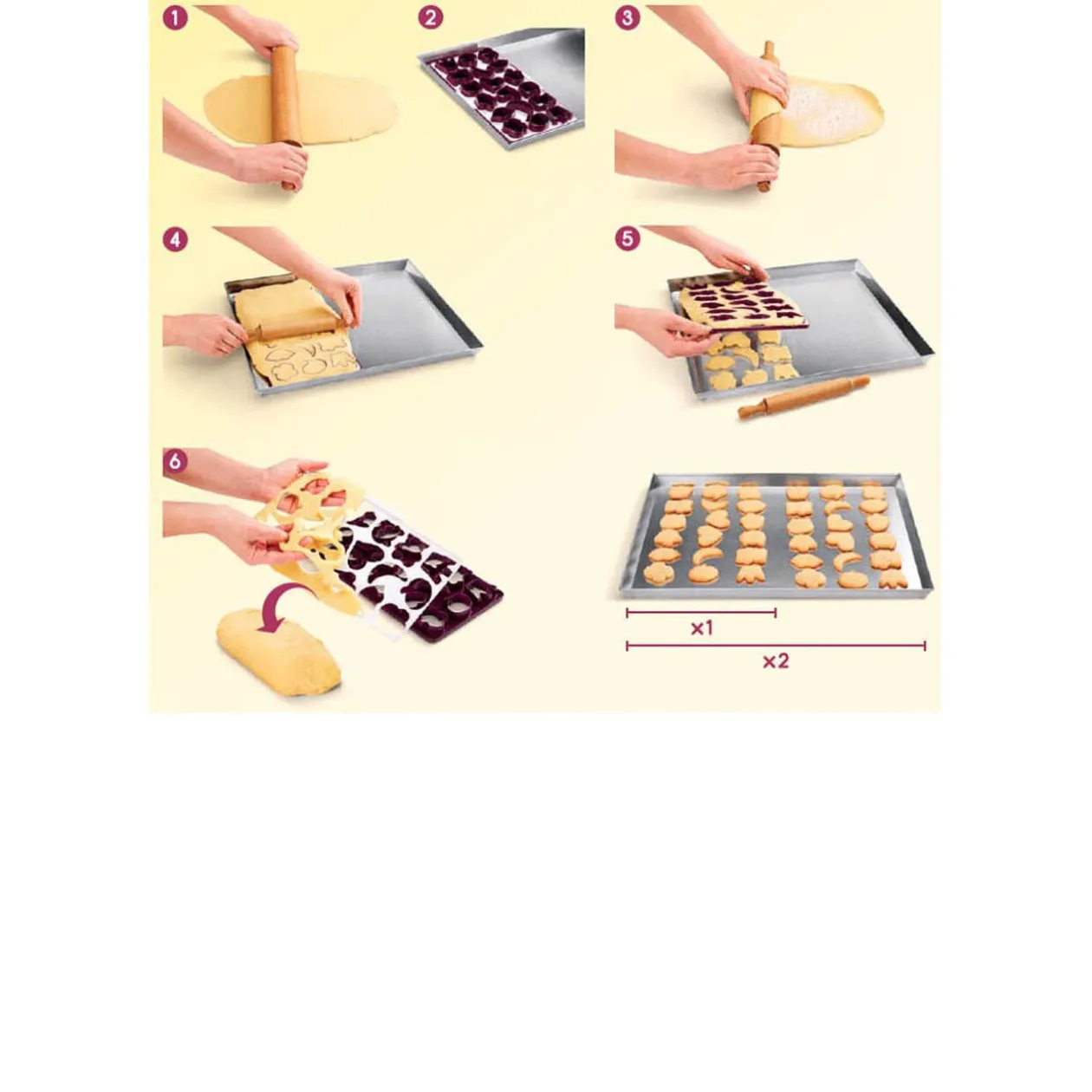 Plaque de 18 emportes pièces de différentes formes : étoiles, gâteau, ourson, couronne, lune, fleur, chat, bulle, coeur, bouche.