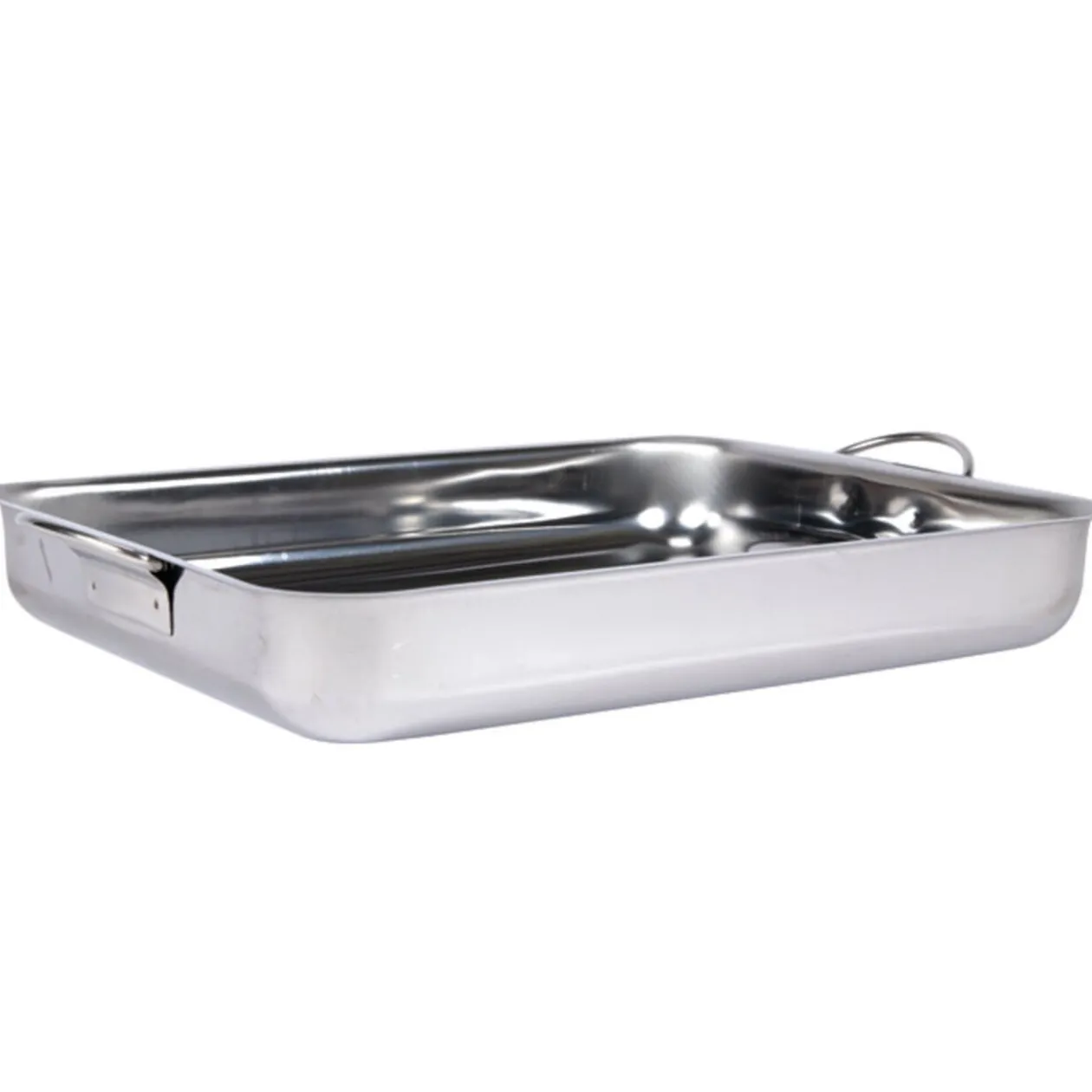 2 plats au four en inox, dim. 30×24 cm et dim. 35×27 cm.