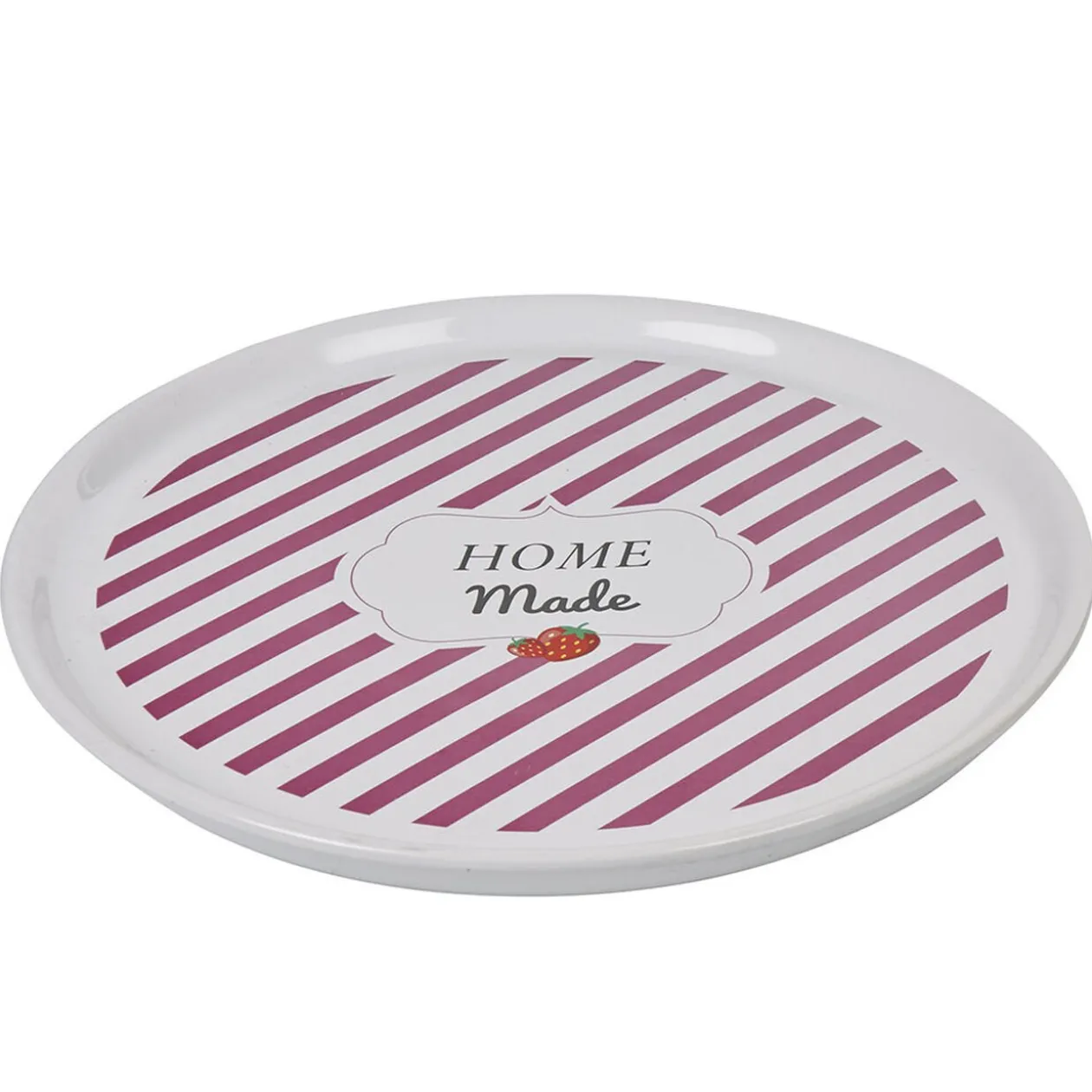 Plat à tarte en céramique de couleur blanche avec intérieur déco rayures rouges