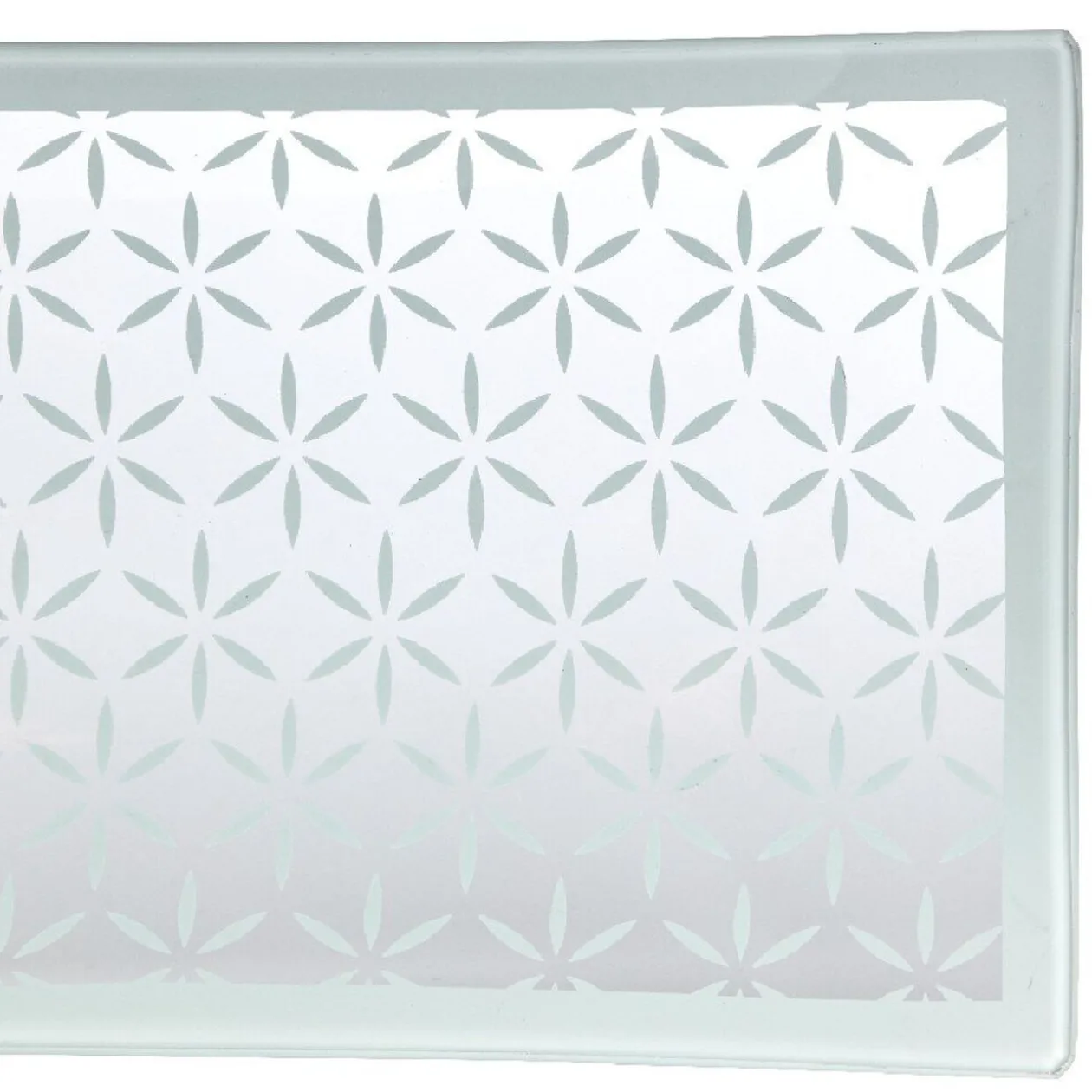 Craquez pour ce plat de service élégant qui donnera une touche personnelle à la décoration de votre table. Son design en verre transparent décoré de motifs flocons blancs vous permettra de réussir la présentation de vos plats. Ce plat de service rectangulaire sera parfait pour les fêtes de fin d’année. Alors, n’hésitez plus !