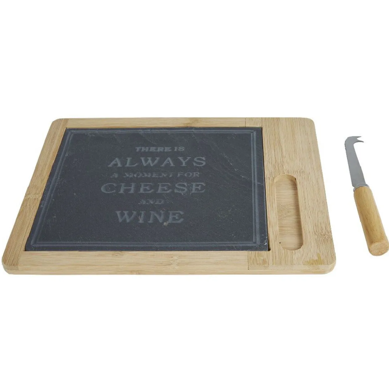 Plateau à fromage ardoise avec couteau à fromage – Dimensions :L30x24x3,6cm – Matières : bambou et ardoise