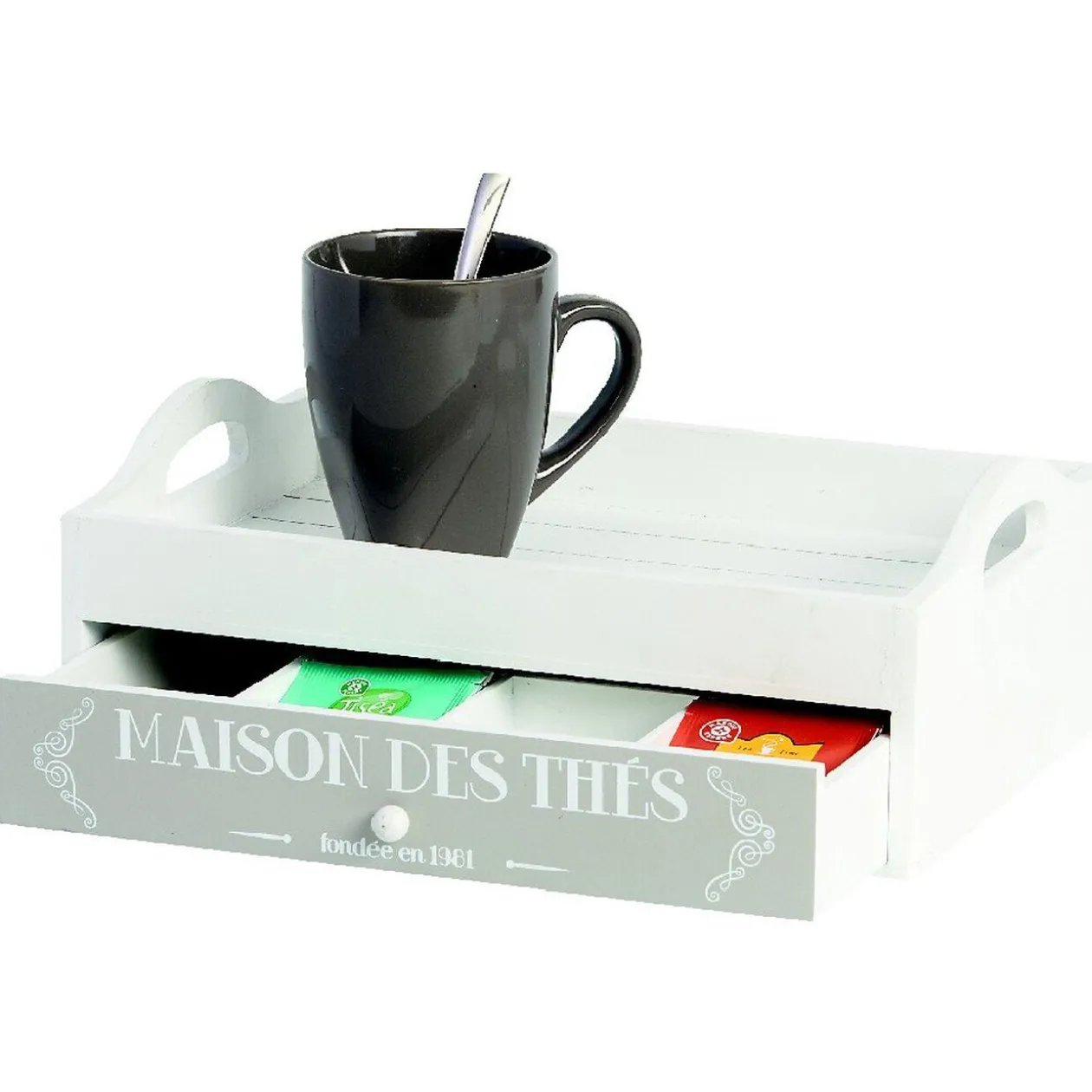 Plateau avec tiroir compartimenté design Maison des thés