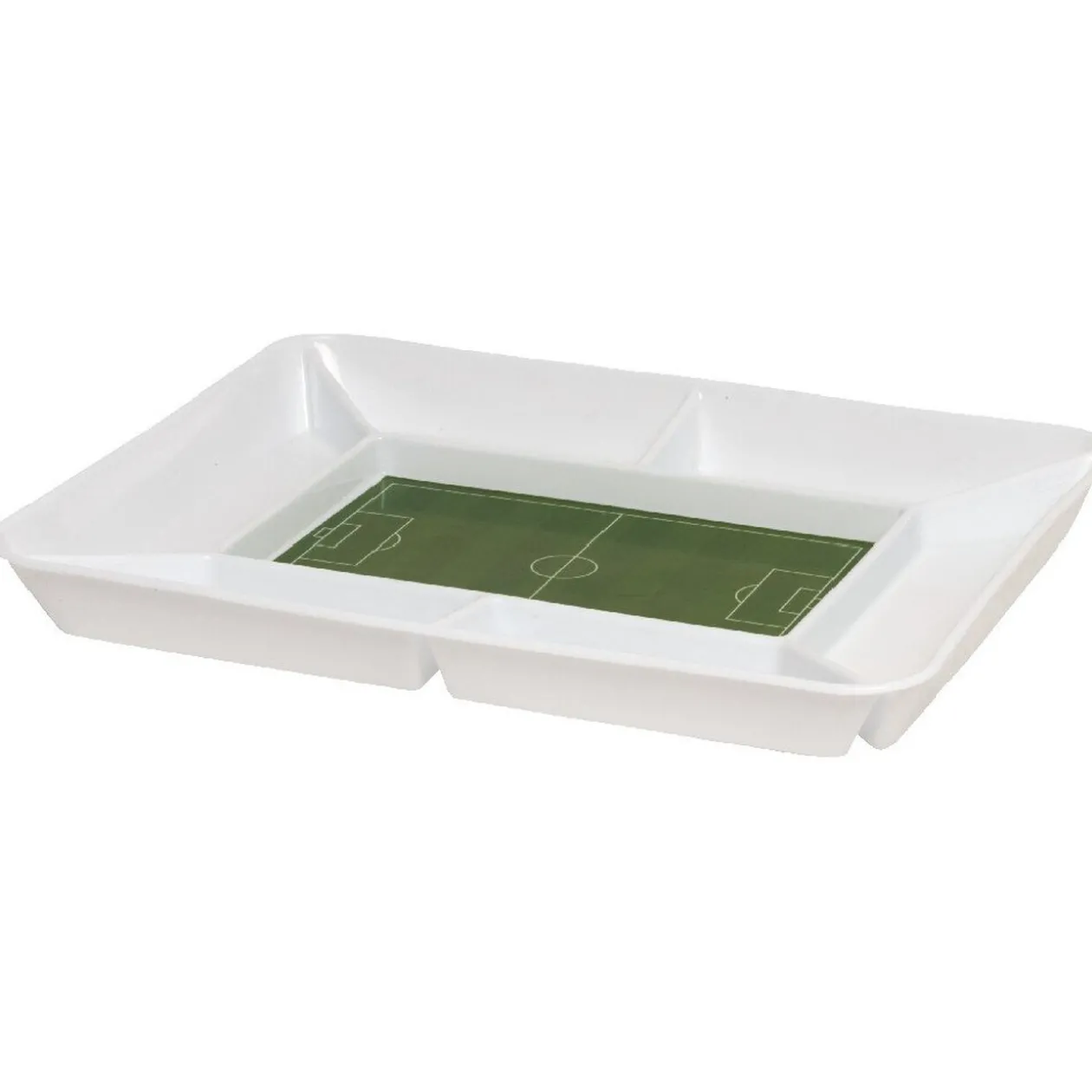 Plateau compartimenté en forme de terrain de football, dim. 44,5×34,5 cm, plastique.