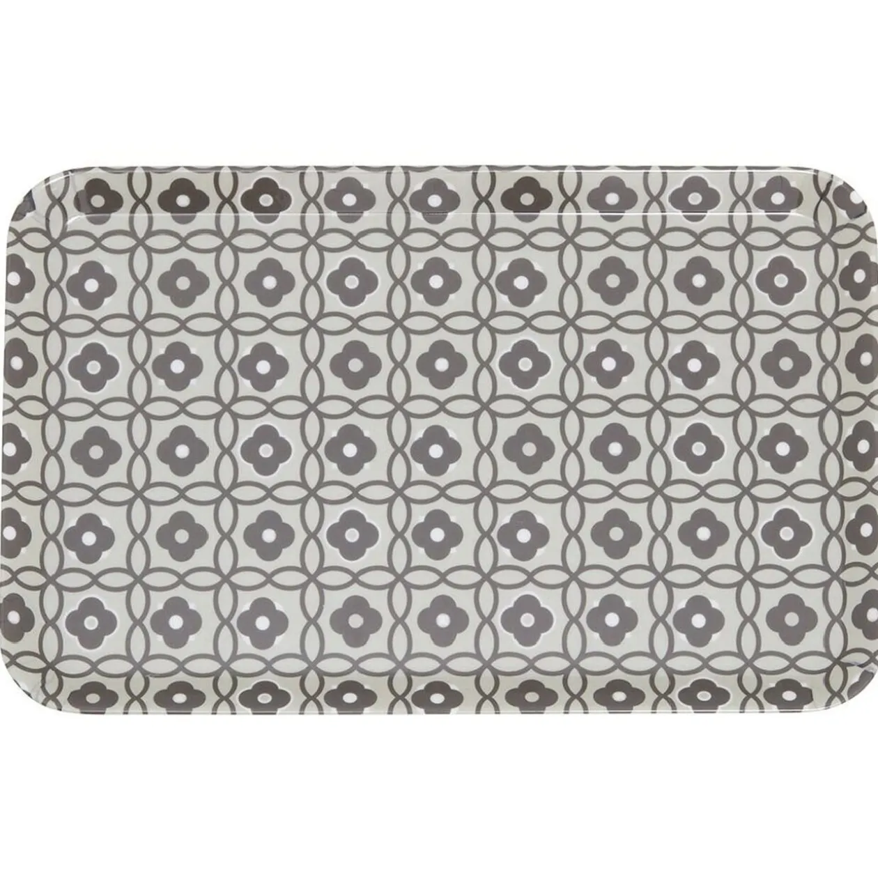 Plateau en plastique mélamine design carreaux de ciment de couleur gris et blanc.