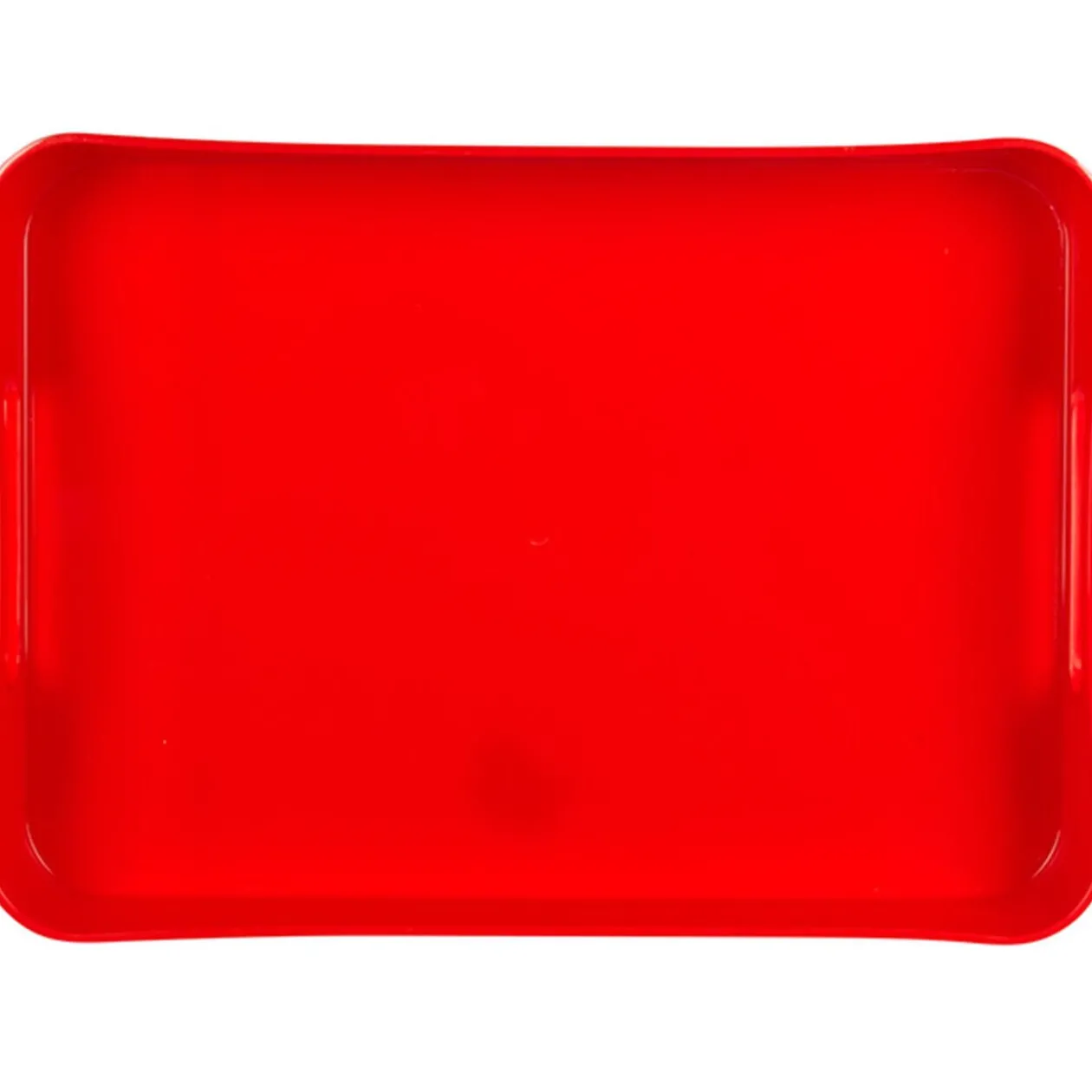 Plateau en plastique rouge. Dimensions : 35,5×25,5×4,5 cm.