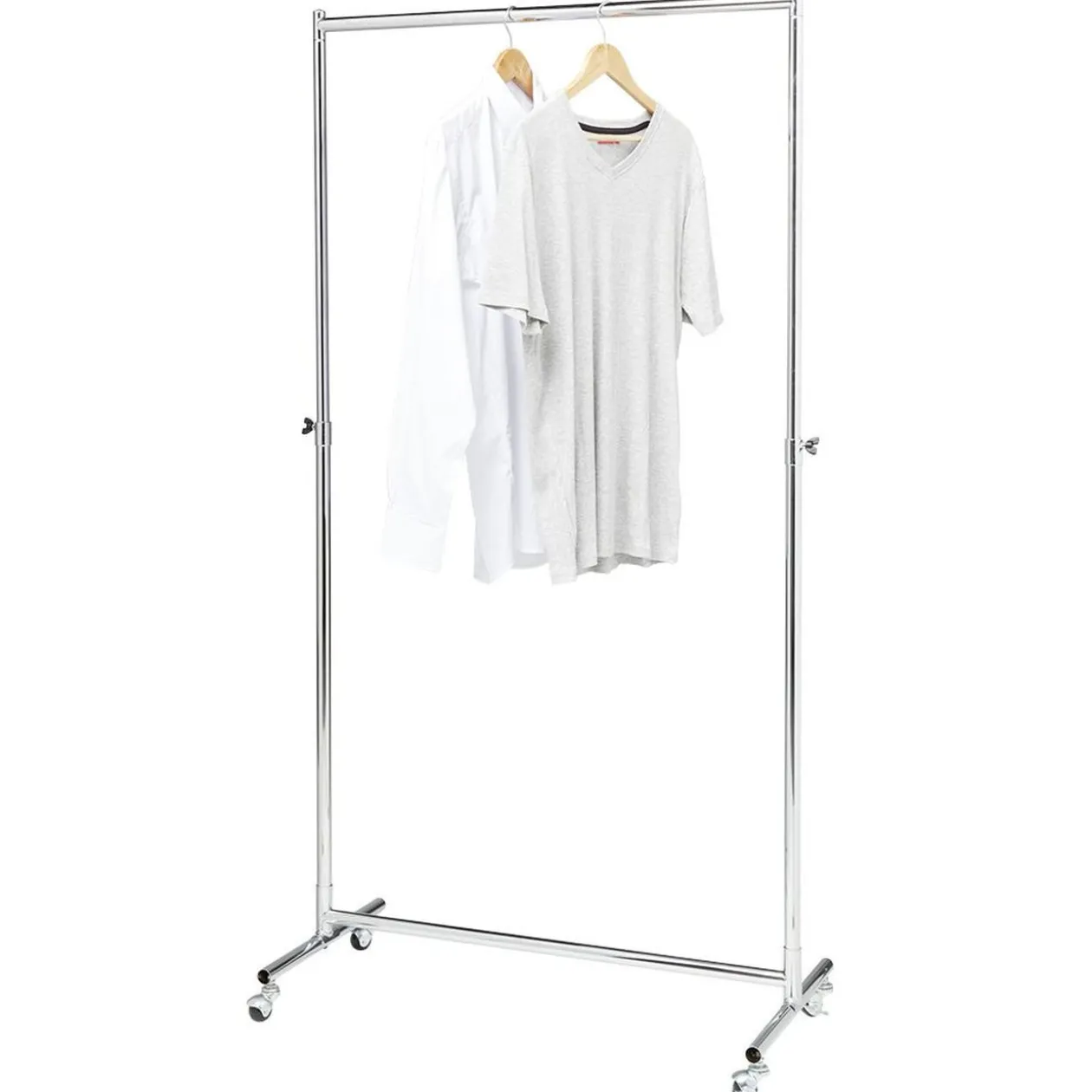 Portant à vêtements extensible d’une hauteur de 117,5 à 172 cm. Muni de 4 roulettes, il sera facile à déplacer même avec des vêtements suspendus.