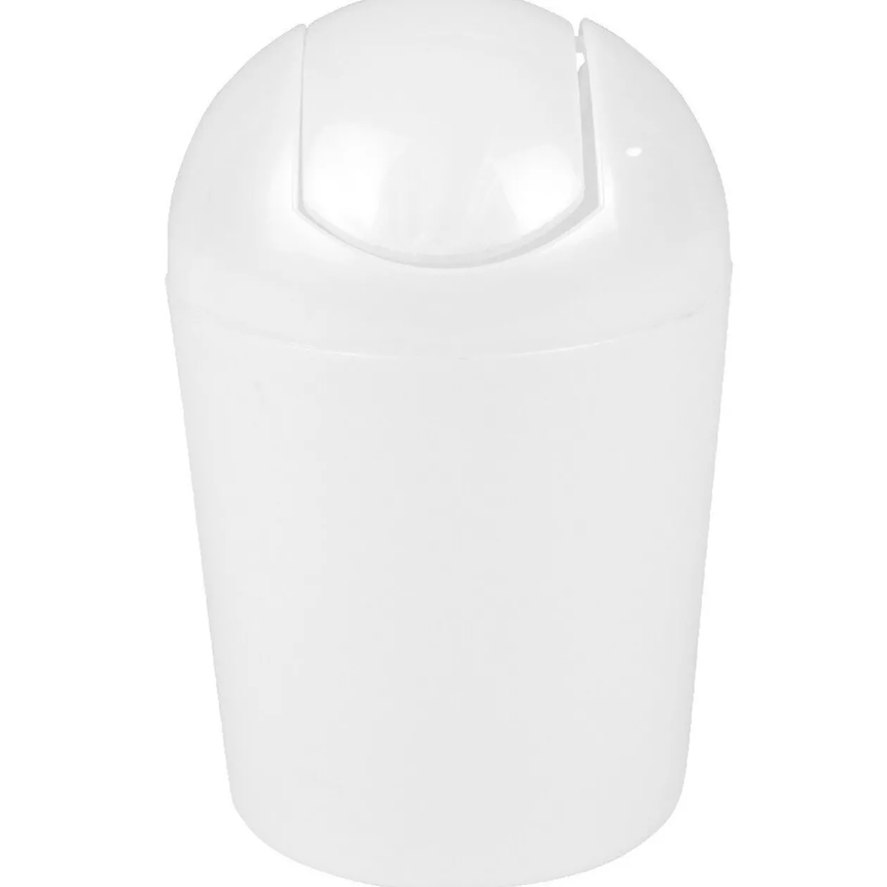 Lot de 2 minis poubelles à coton en plastique blanc brillant.