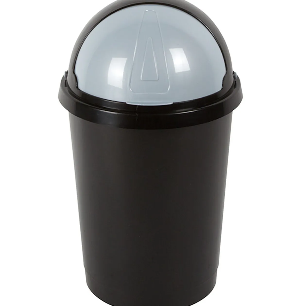 Poubelle à rabat noire et grise, dim. Ø40xh.75 cm, plastique.