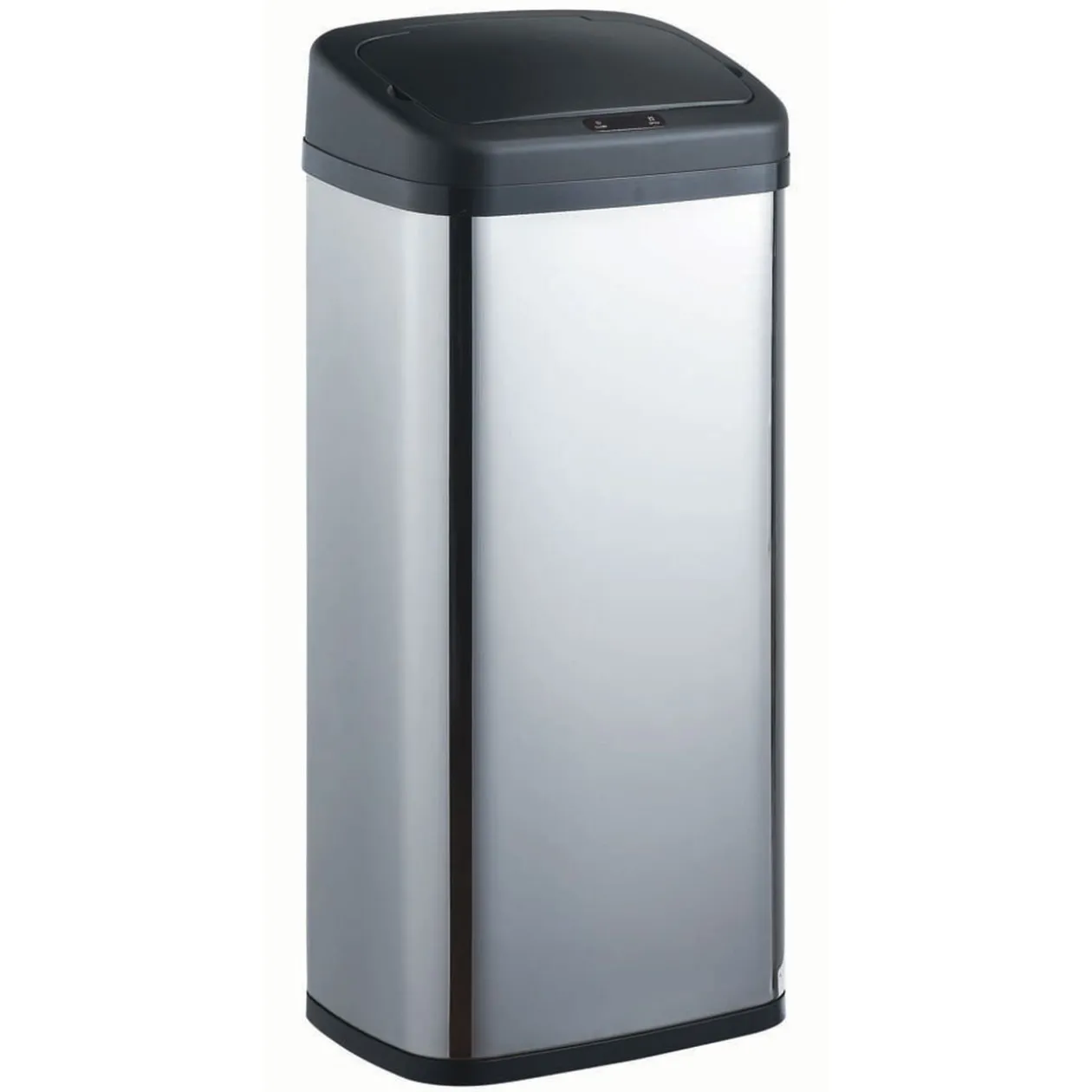 Poubelle grise et noire avec système automatique et infrarouge qui détecte le passage de votre main et s’ouvre instantanément.