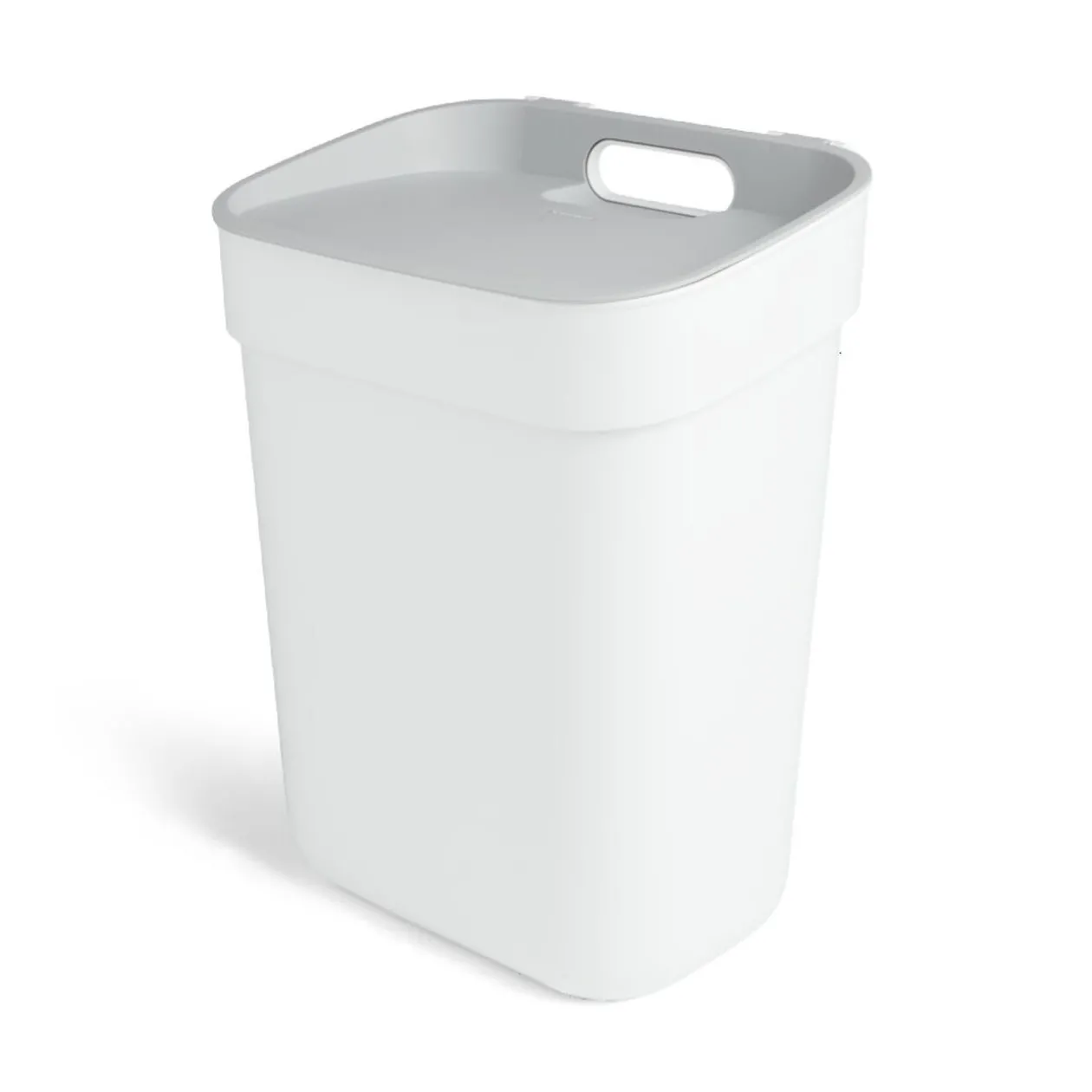 De couleur blanche avec couvercle gris clair, cette poubelle d’une contenance de 10 litres est idéale pour trier vos déchets au quotidien.