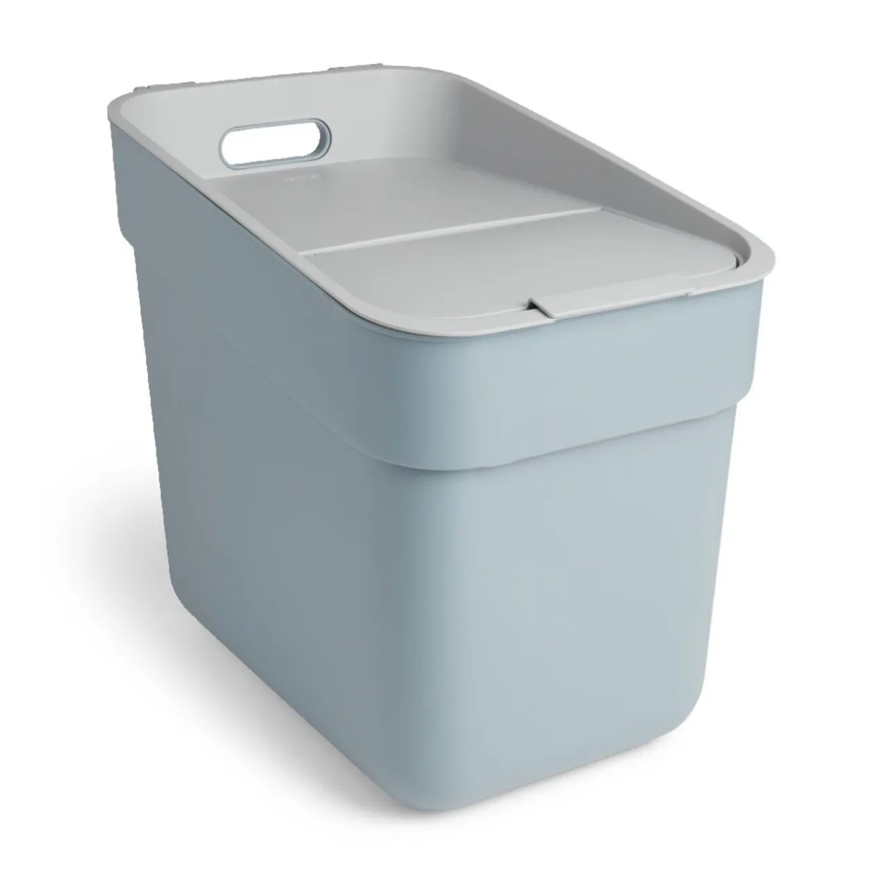 Équipez-vous de façon à trier efficacement vos déchets avec cette poubelle bleue dotée d’un couvercle gris clair.
