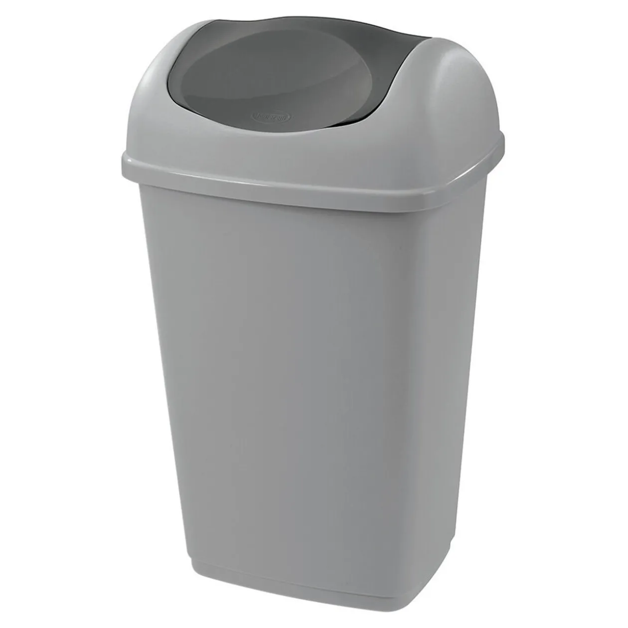 Poubelle grise avec couvercle à bascule d’une contenance de 15L