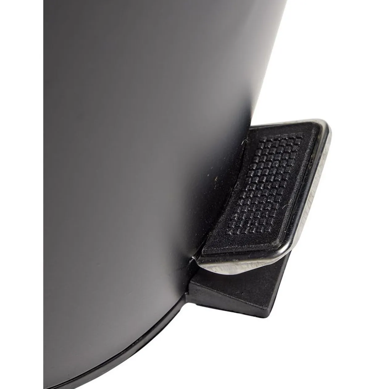 Poubelle à pédale de couleur noire avec couvercle en bambou.