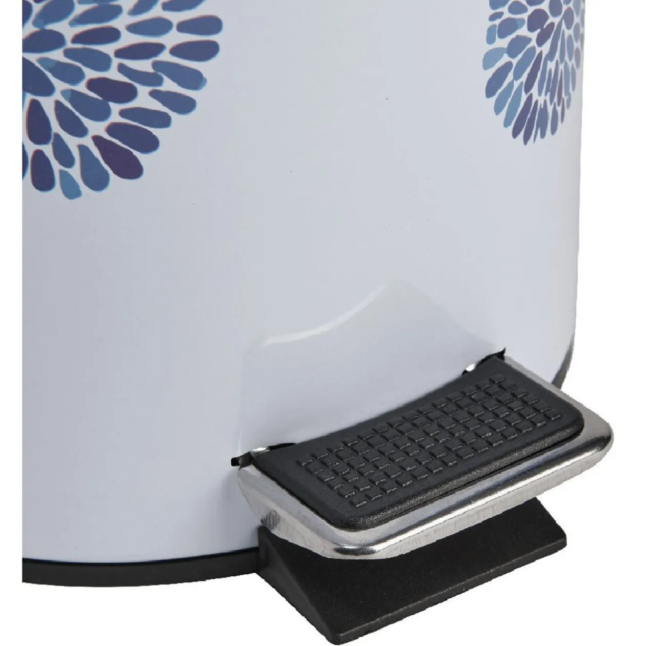 Poubelle de salle de bain en céramique blanc imprimé design cyclade bleu.