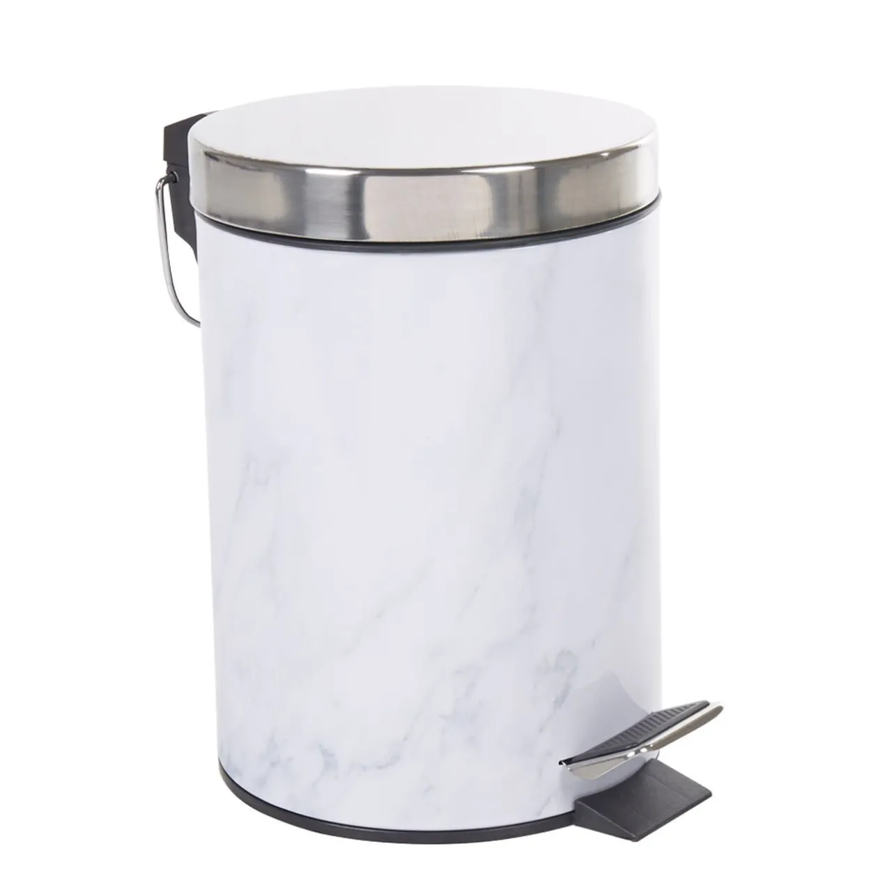 Poubelle de salle de bain en aluminium imprimé effet marbre.