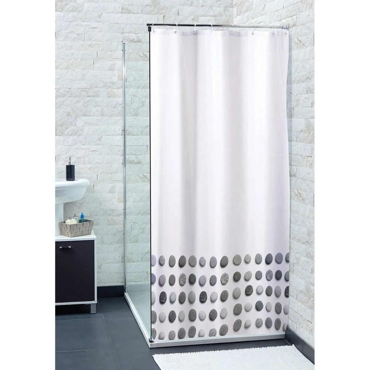 Décorer votre salle de bain à l’aide de ce rideau de douche blanc à motif galets.