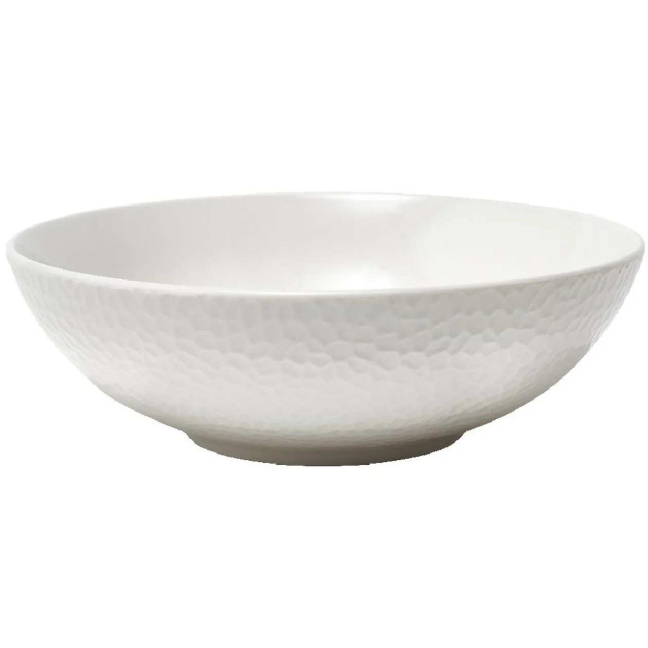 Saladier en porcelaine avec extérieur à motif embossé uni blanc.