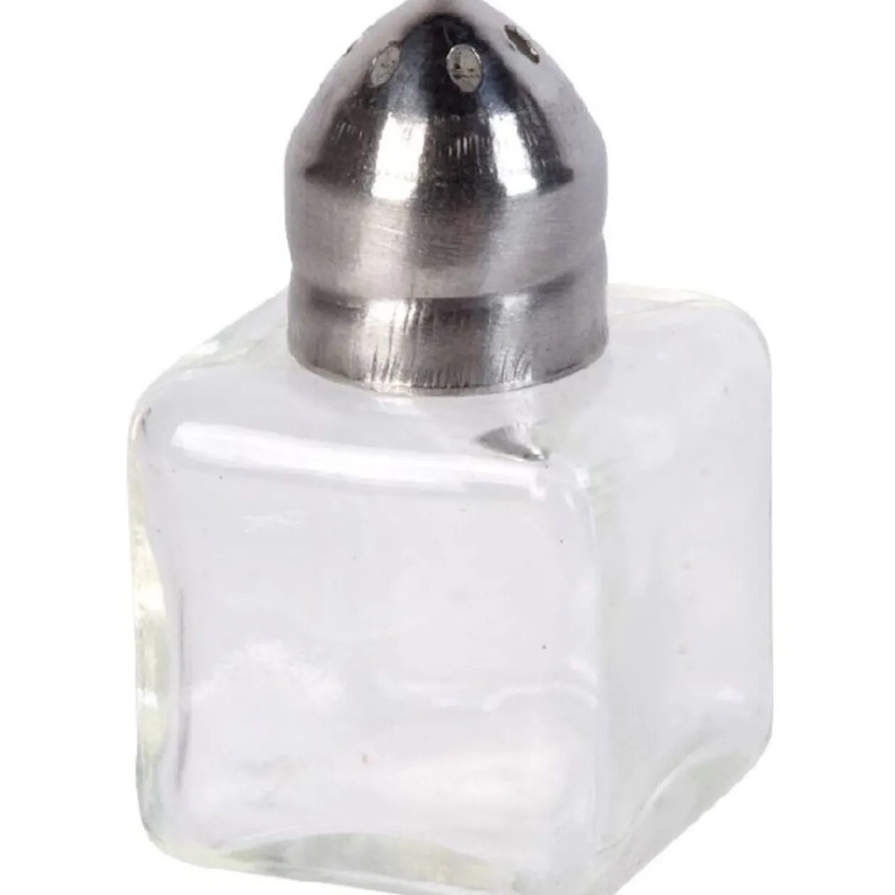 4 mini salières / poivrières, dim. 3xh5 m, verre et métal.