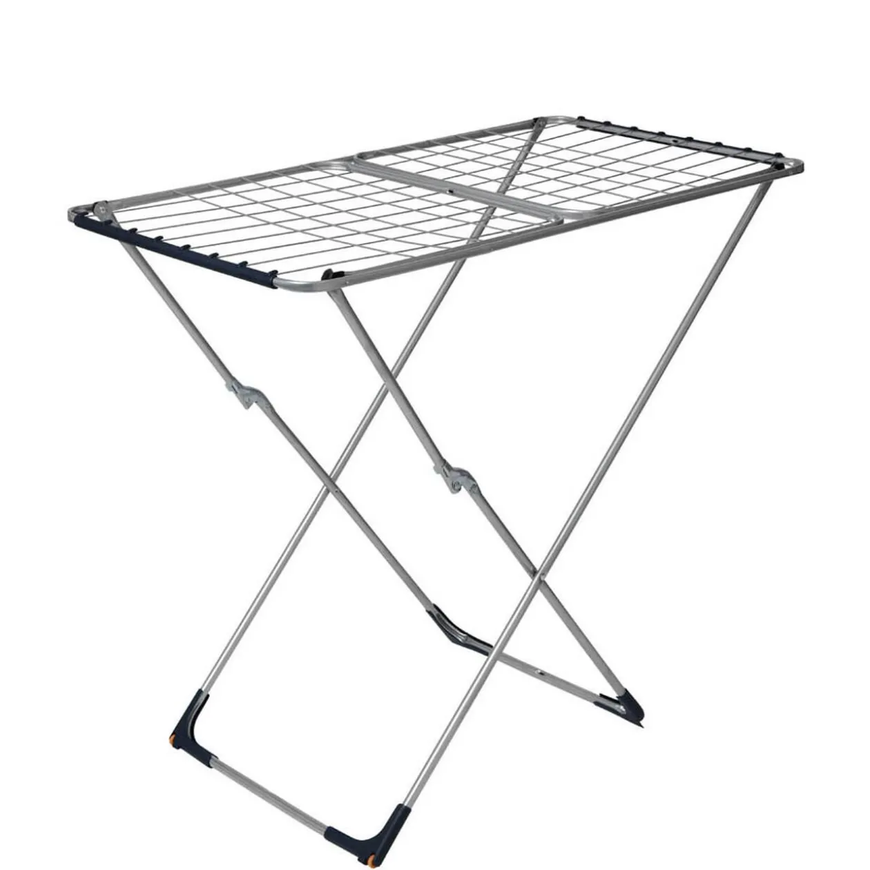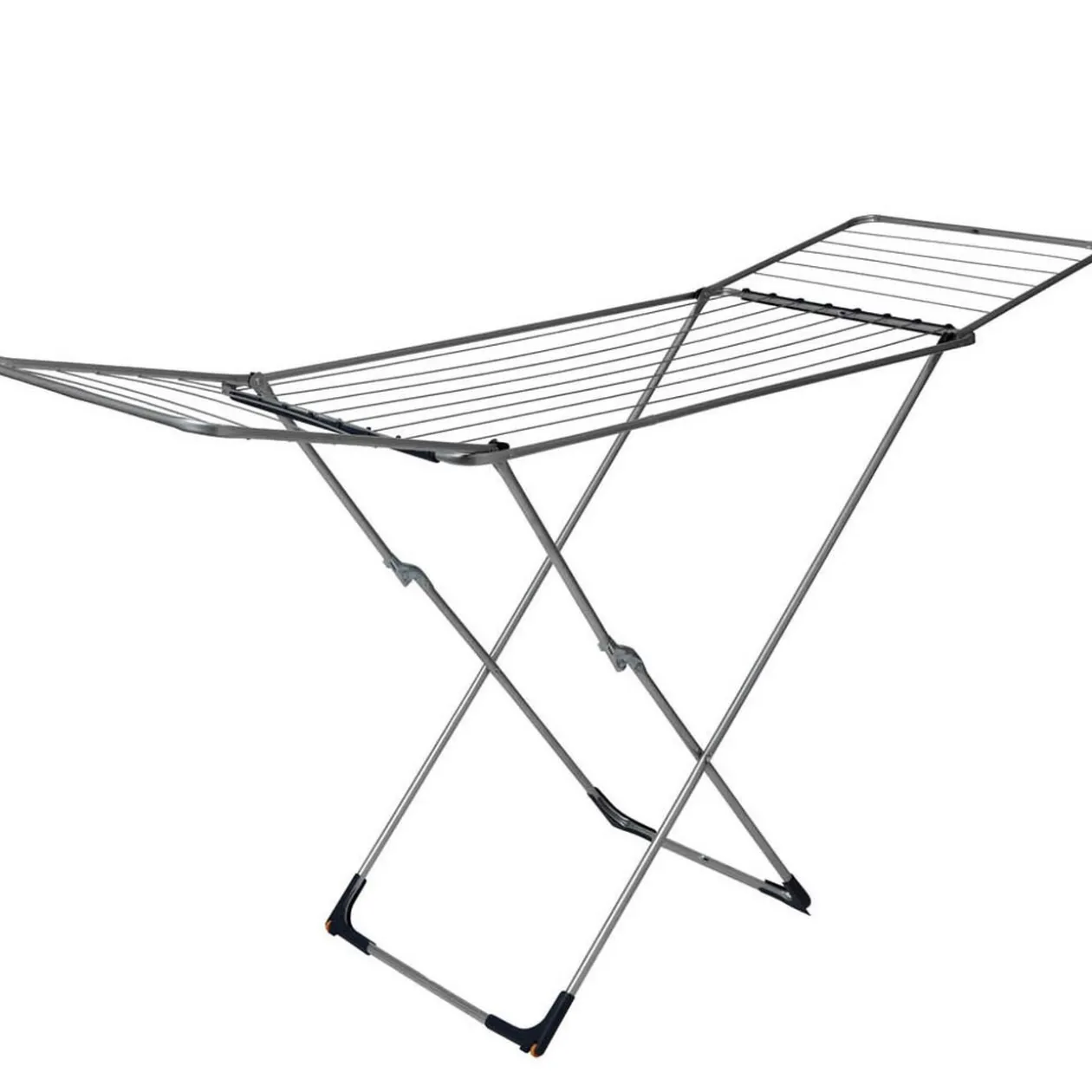 Séchoir à linge horizontal gris et bleu avec une capacité de 18 mètres d’étendage, idéal pour étendre votre linge ou sécher vos serviettes !