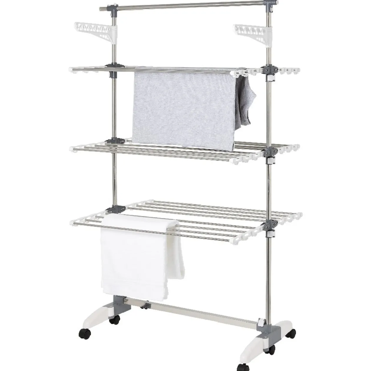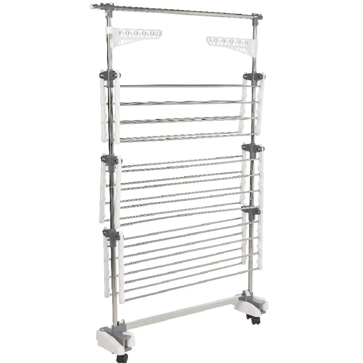 Séchoir tour avec une capacité d’étendage de 22 mètres. Muni de 4 roues vous pourrez le déplacer aisément et le ranger sans encombre grâce à ses grilles repliables.