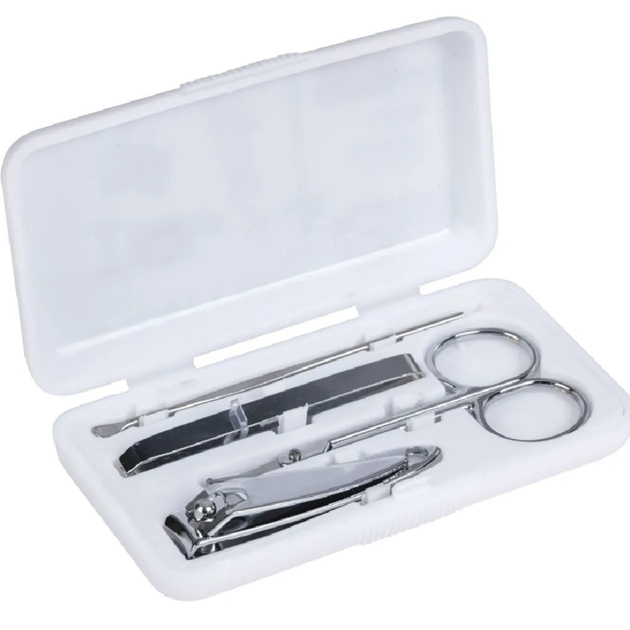 Set manucure comprenant 1 coupe ongles, 1 ciseau, 1 repousse cuticule et 1 pince à épiler.