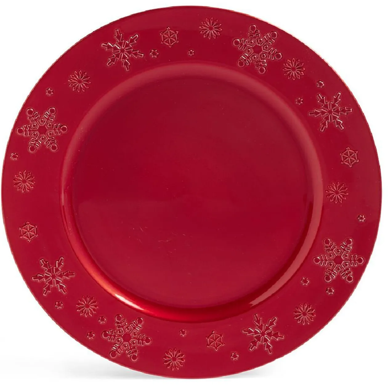 Afin de protéger votre nappe pendant toute la durée de votre repas de fête et à la fois décorer votre table, cette sous-assiette rouge avec flocons sur le rebord est idéale.