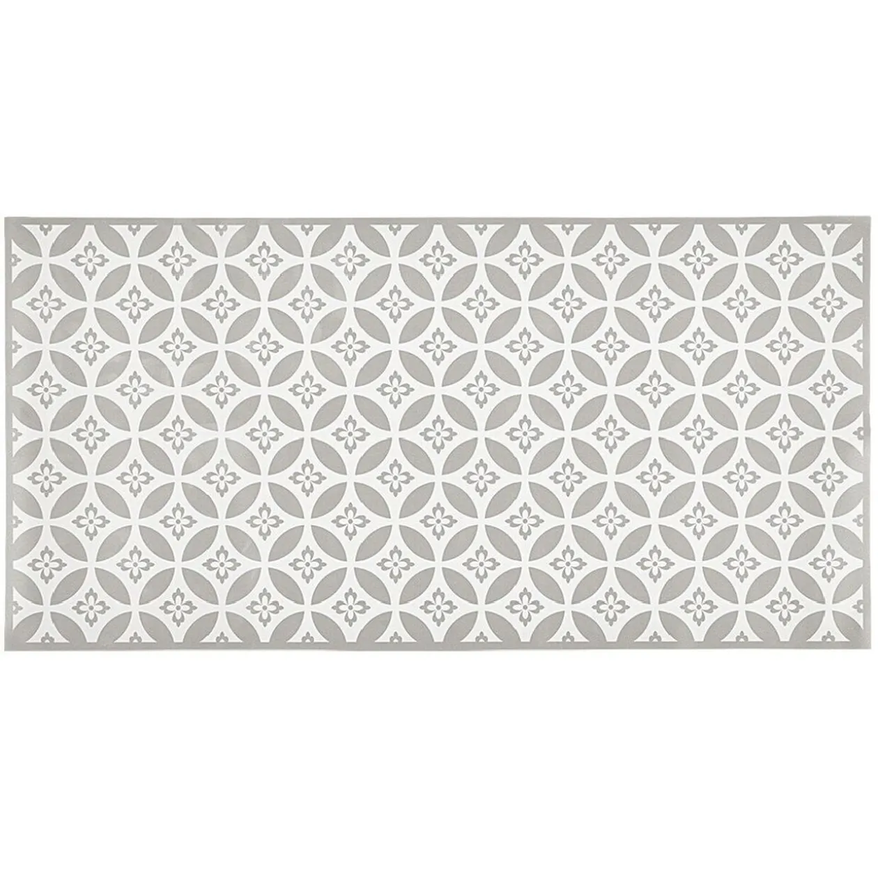 Tapis de cuisine en vinyle rectangulaire imprimé rosace blanc et gris.