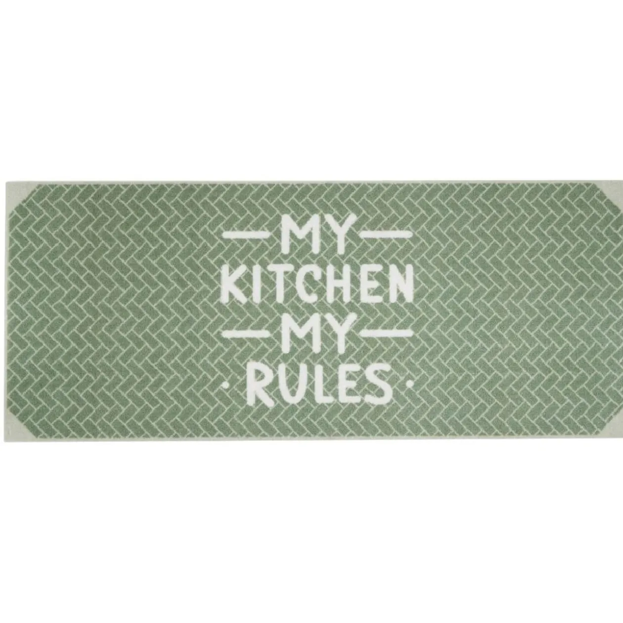 Tapis de cuisine avec inscription « My Kitchen My rules » laissant sous entendre à vos convives que dans VOTRE cuisine, se sont VOS règles !