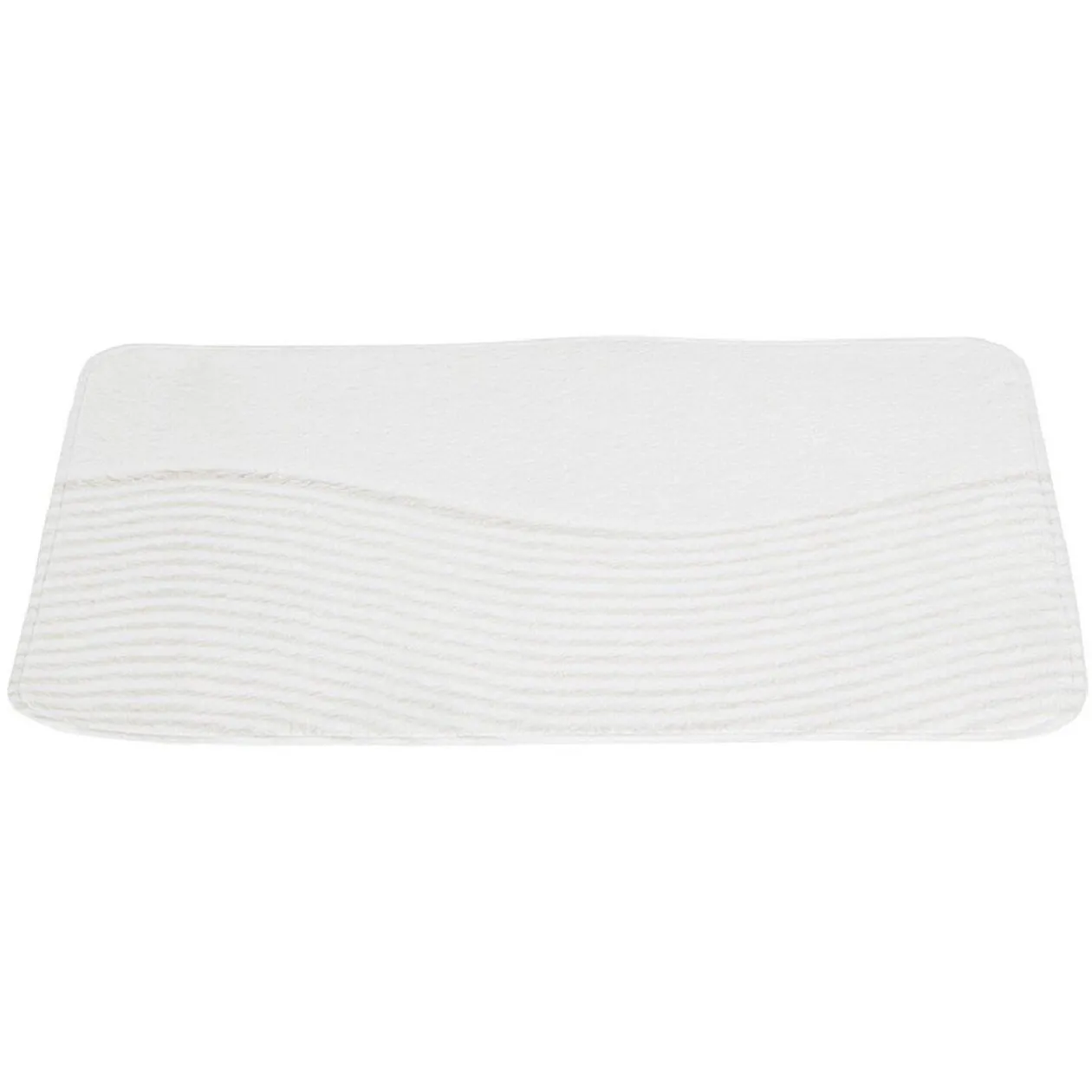 Le tapis de salle de bain existe en 4 différents modèles, selon disponibilité : blanc, marbré, zig-zag noir et blanc ou « good things take time ».