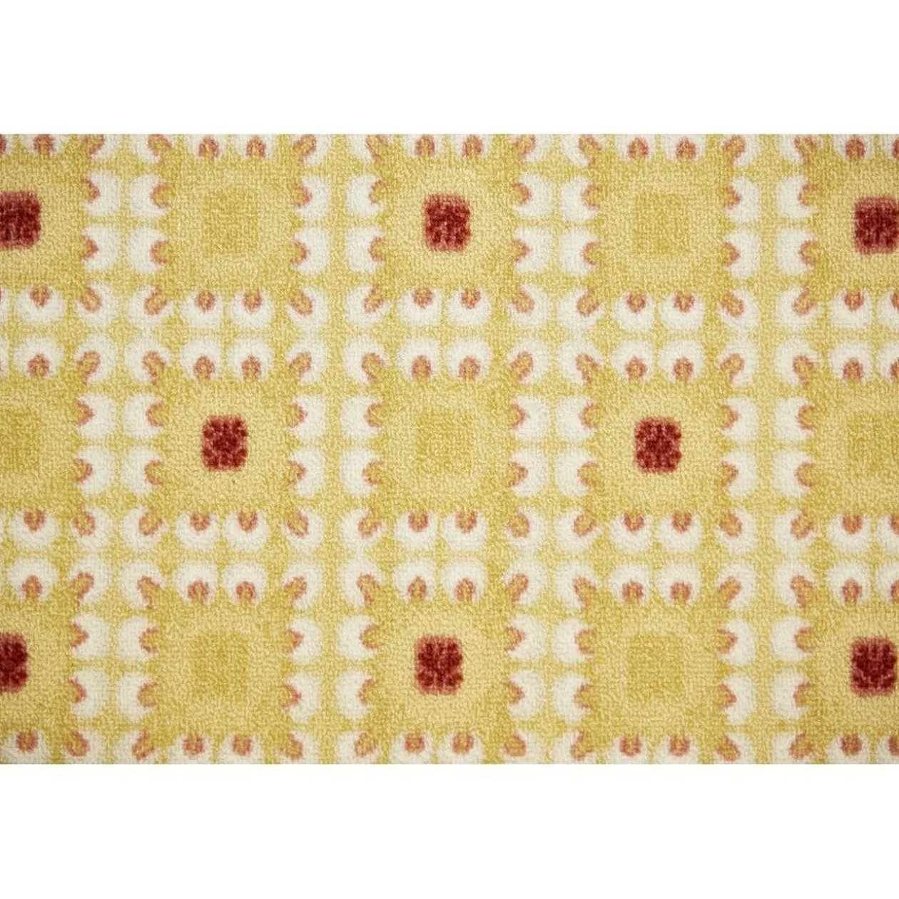 Habillez votre intérieur avec ce tapis d’une longueur de 80 cm. Mis en valeur par ses couleurs douces et chaudes, les motifs pois rouges et carreaux aux lignes blanches sur un fond jaune doux se marieront avec une décoration sobre ou rétro.