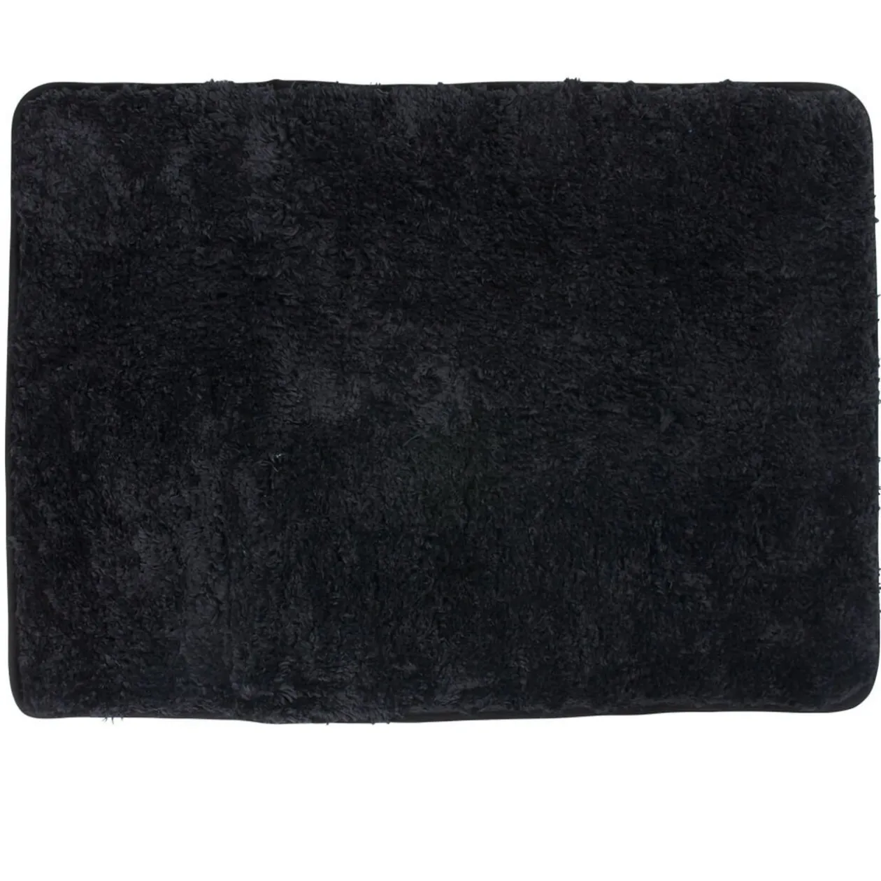 Optez pour ce tapis de salle de bain en polyester uni noir, il vous accueillera avec douceur devant votre douche ou votre baignoire.