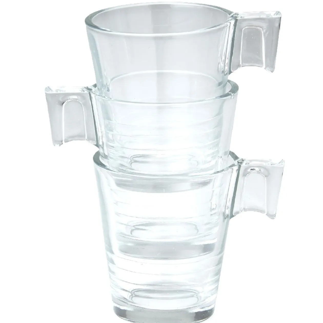 Lot de 3 tasses expresso en verre transparent.