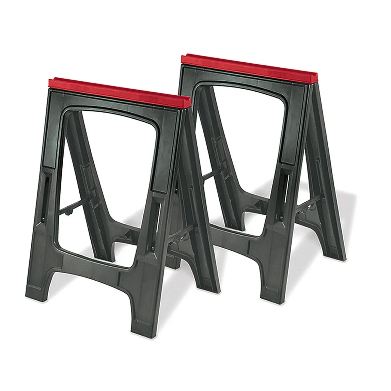 Lot de 2 tréteaux en plastique robuste et pliable pour un gain de place et un transport facilité.