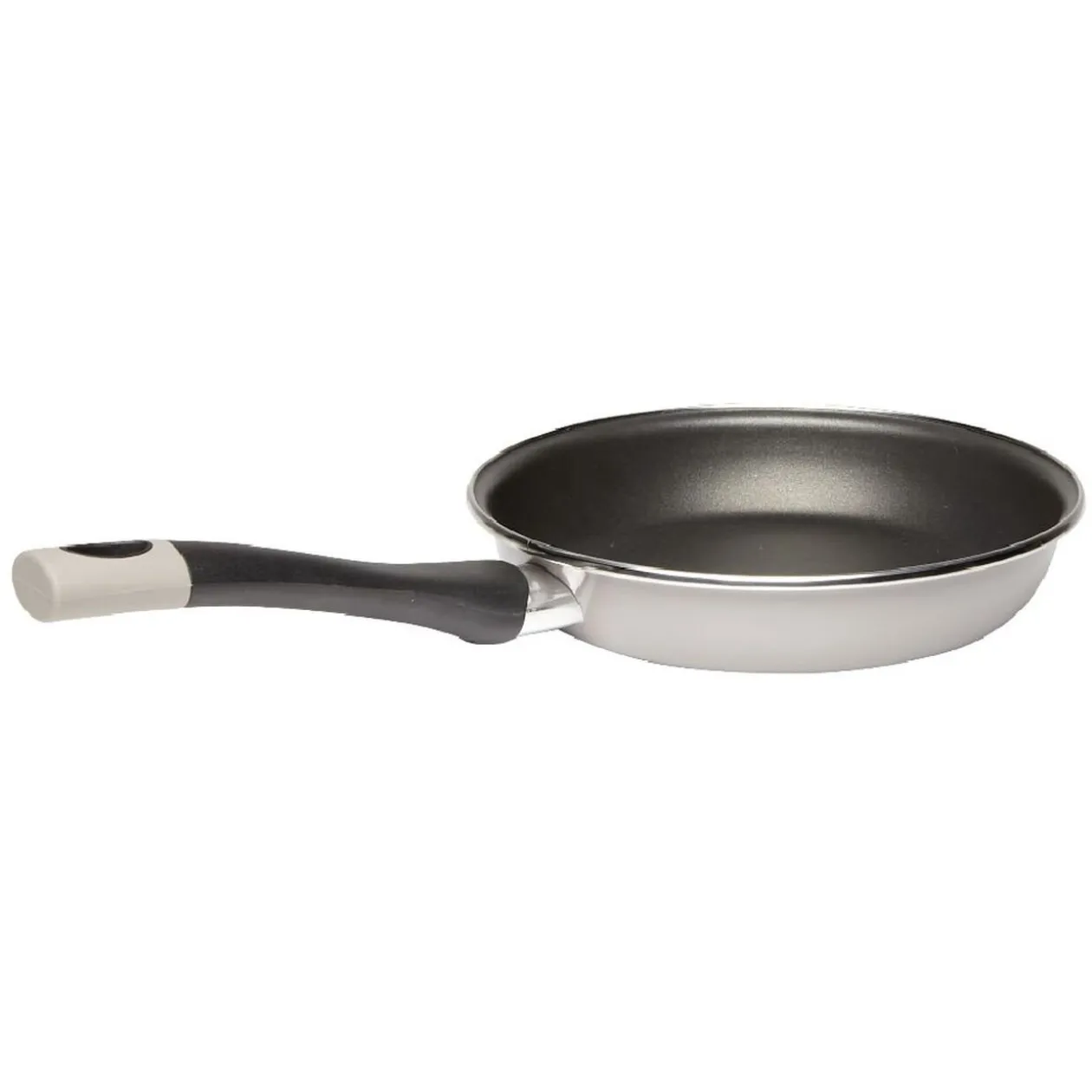 Lot de 2 poêles en acier émaillé beige à l’extérieur.