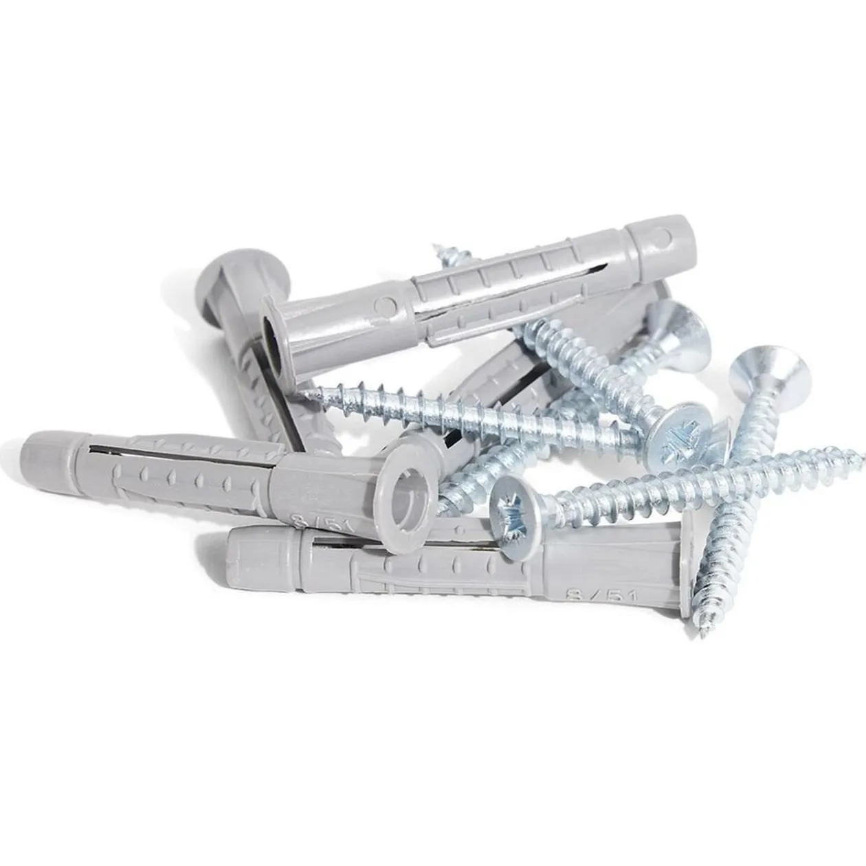 Lot de 5 chevilles universelles en nylon avec vis Ø8x50mm compatibles tous matériaux.