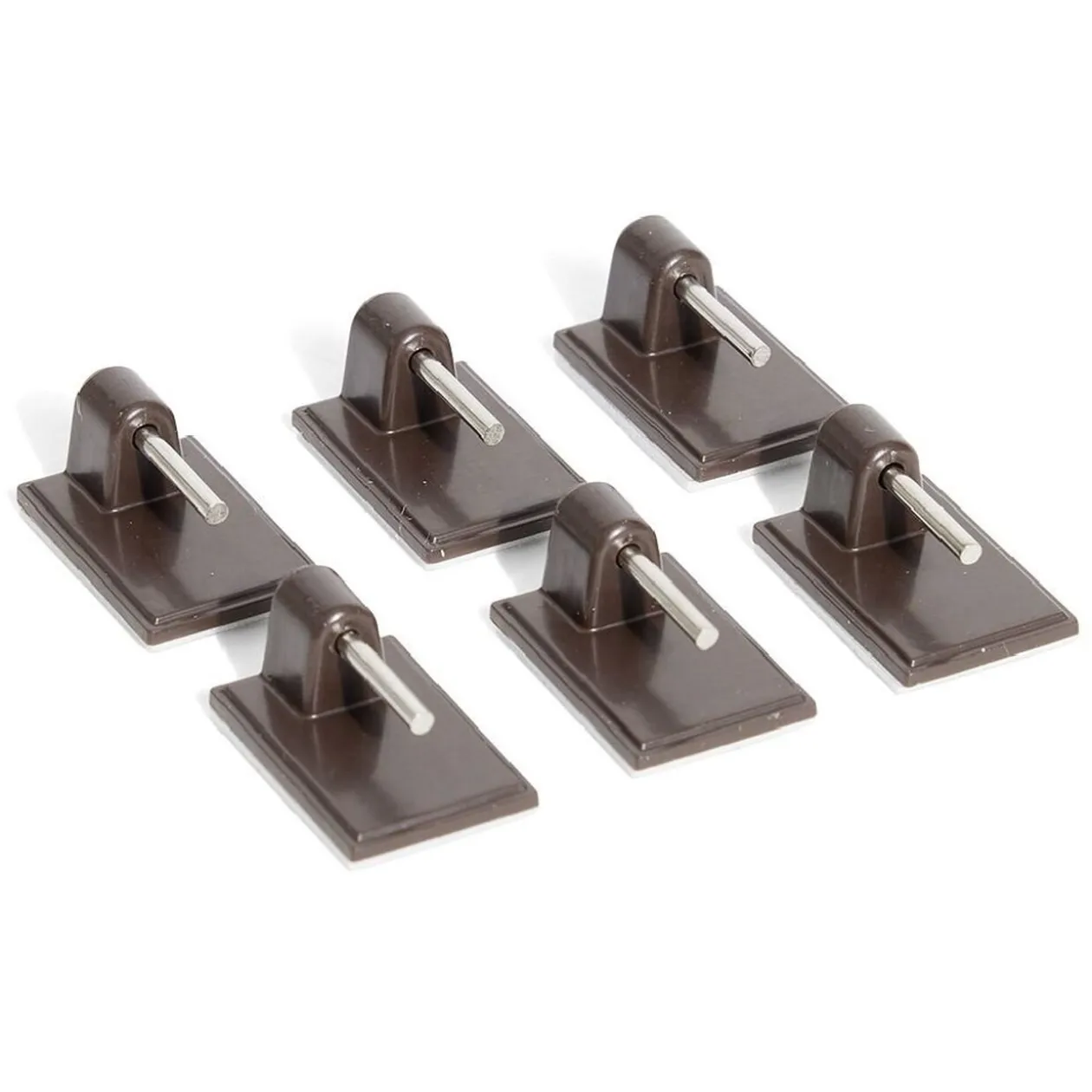 Lot de 6 crochets pour tringles en plastique marron avec adhésif.