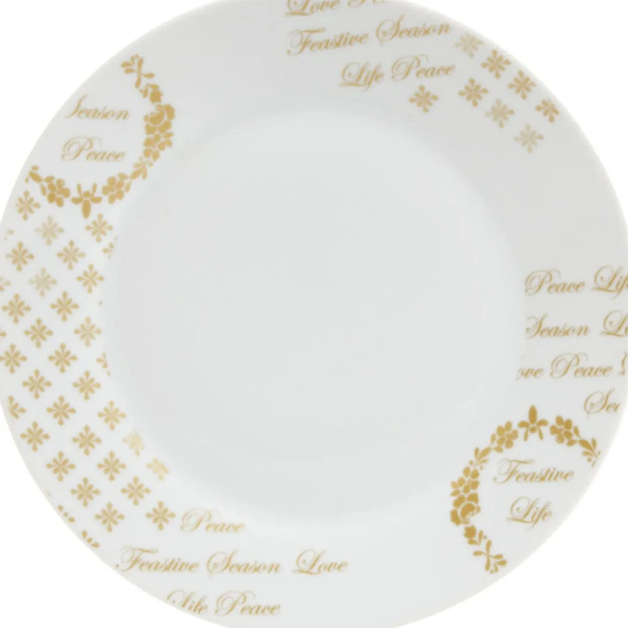 Assiette à dessert Noël blanche, motifs dorés, porcelaine, ø 19 cm.