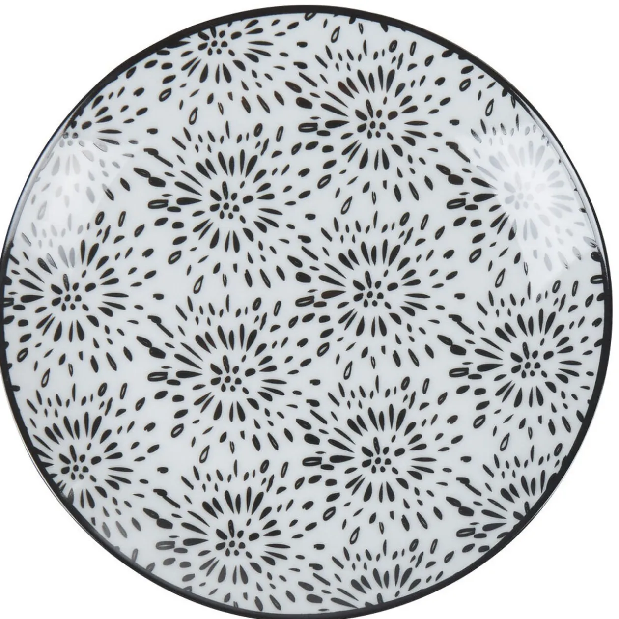 Assiette à dessert blanche et noire ronde Sara, dim. Ø19xh.1,9 cm, porcelaine.